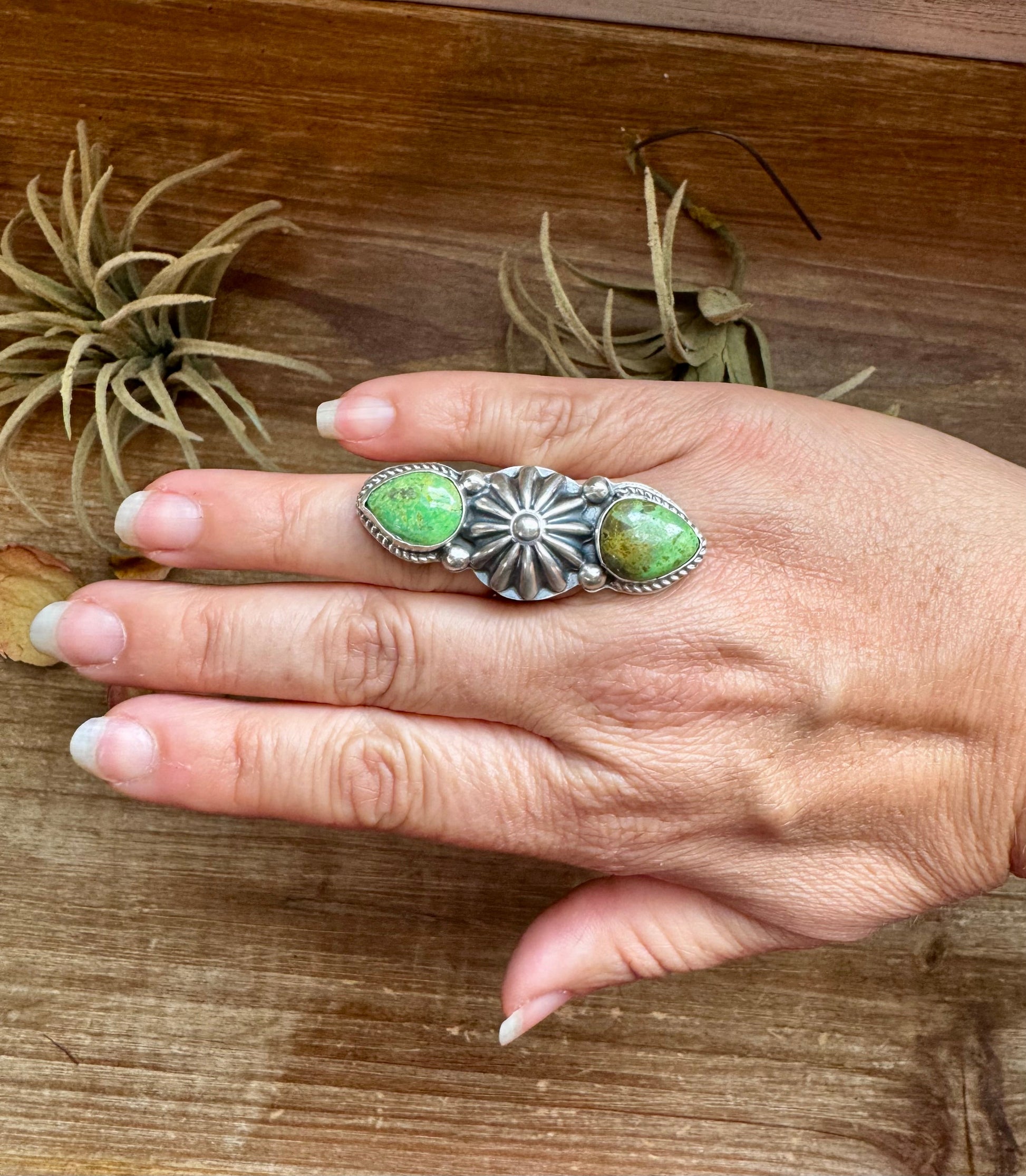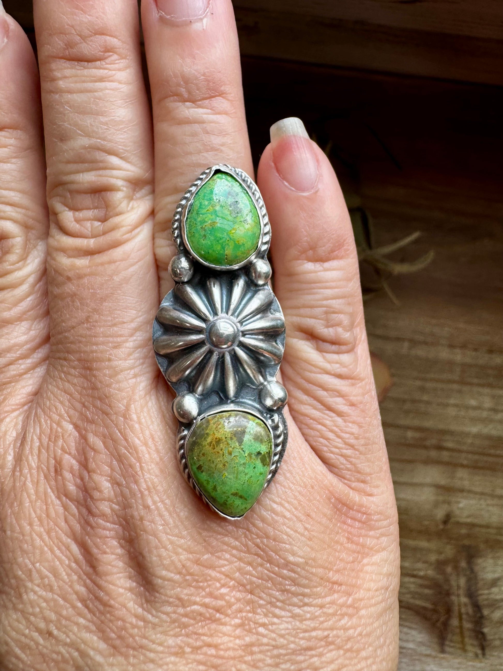 Adjustable Green Turquoise Concho Ring – Navajo Handmade by BJA (Boyd Ashley)