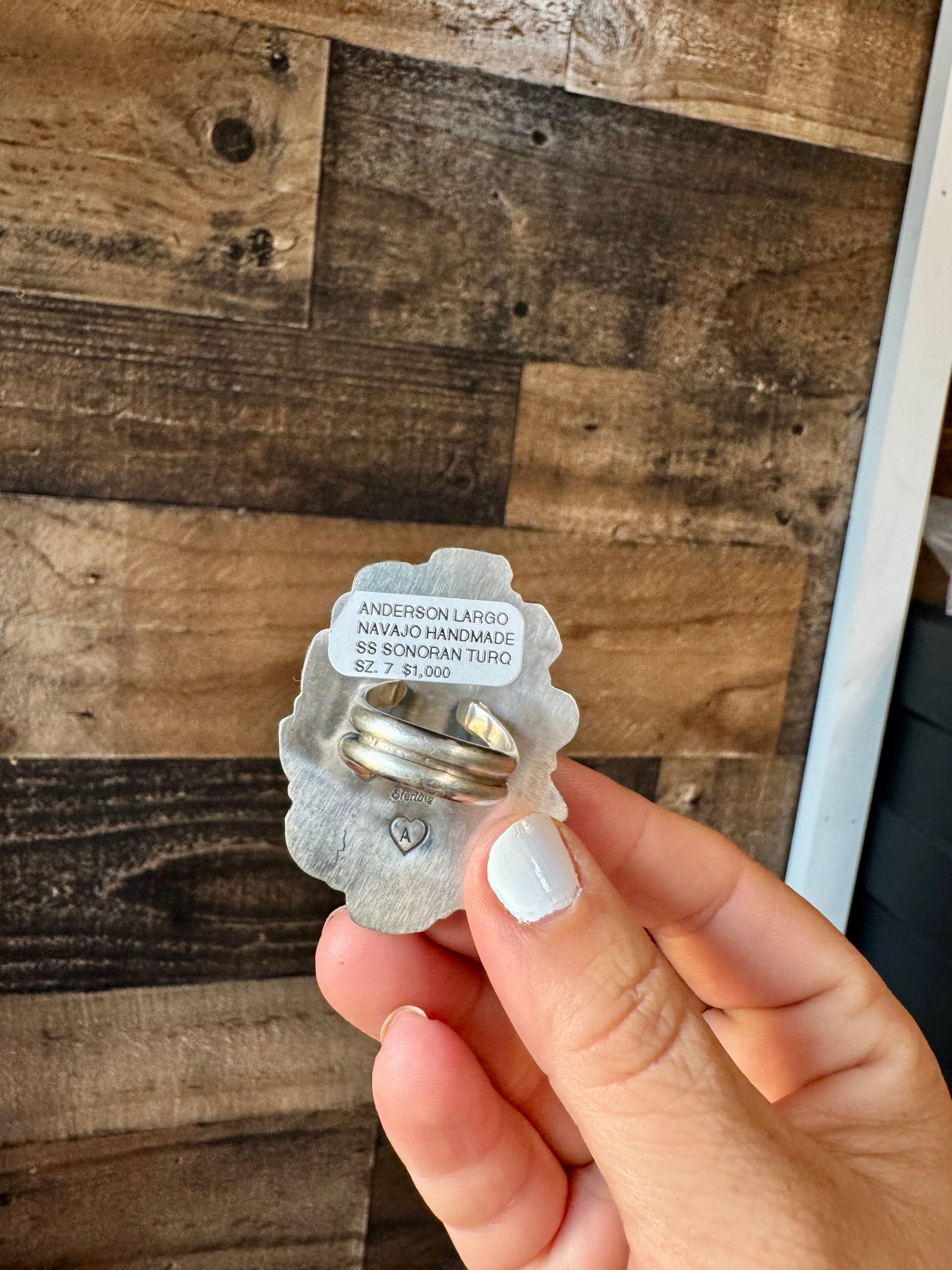 Big ring- size 7.5- Sonoran turquoise ring and sterling silver