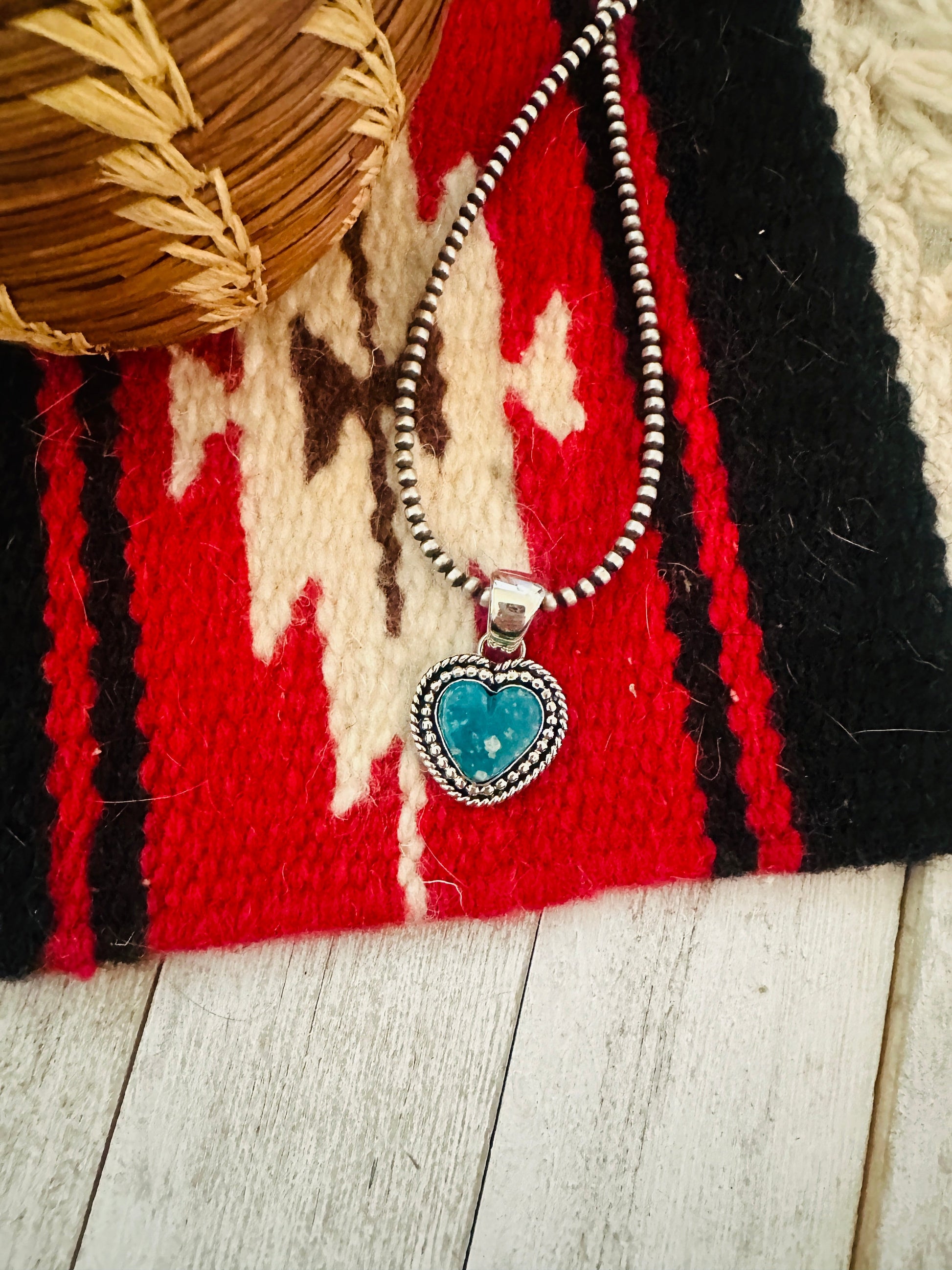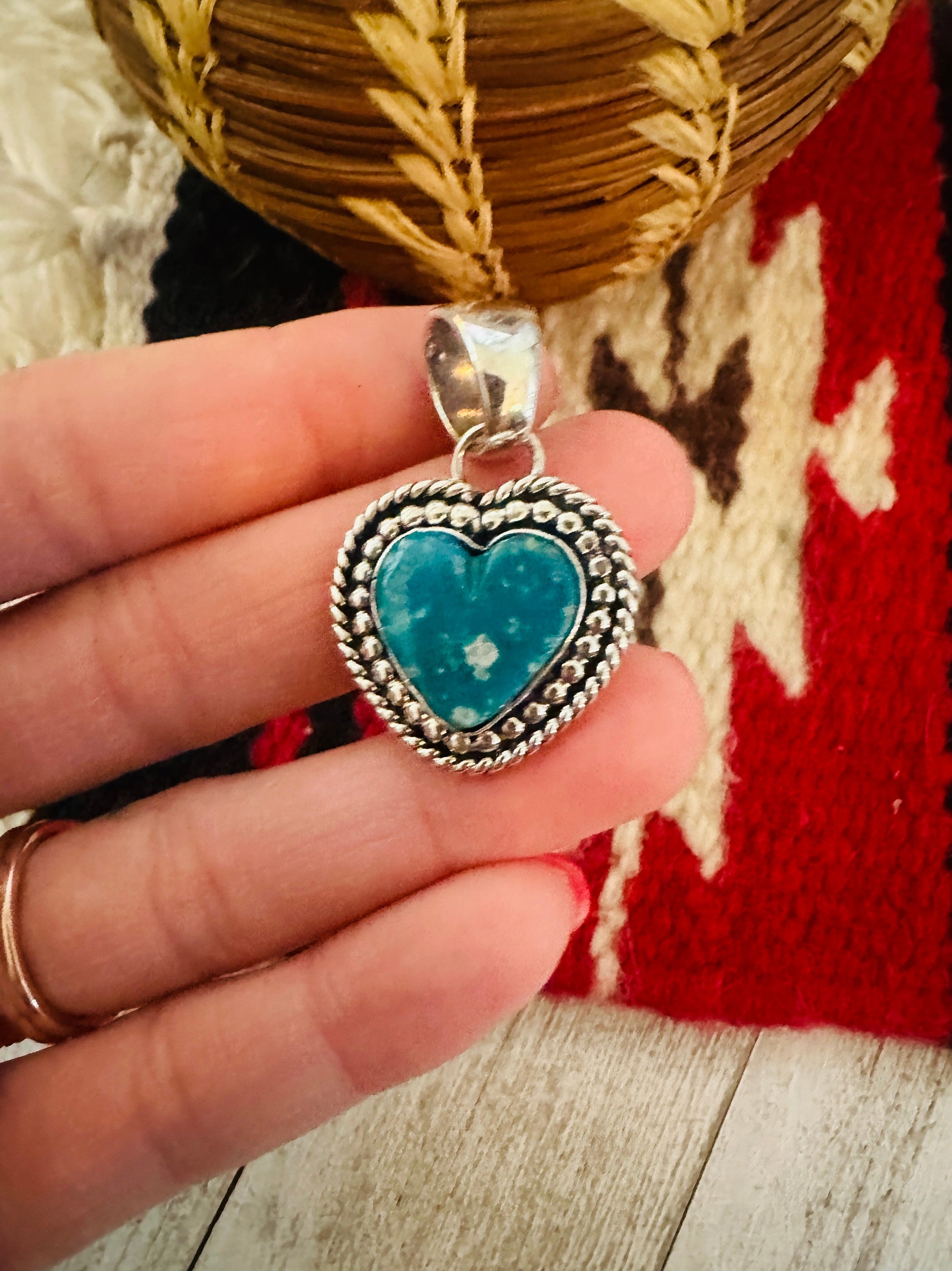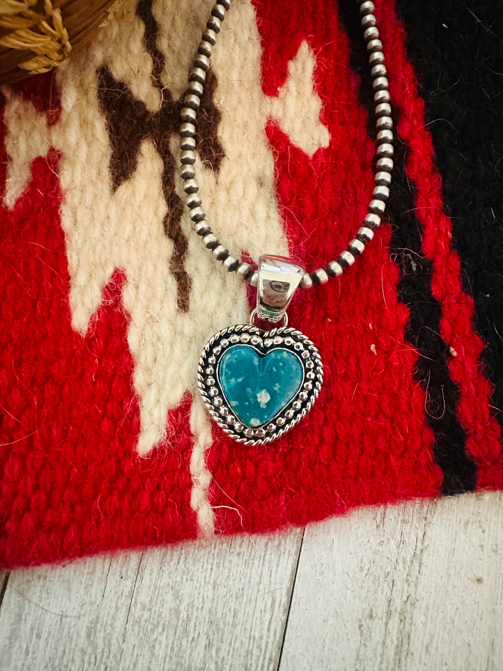 Navajo Turquoise & Sterling Silver Heart Pendant