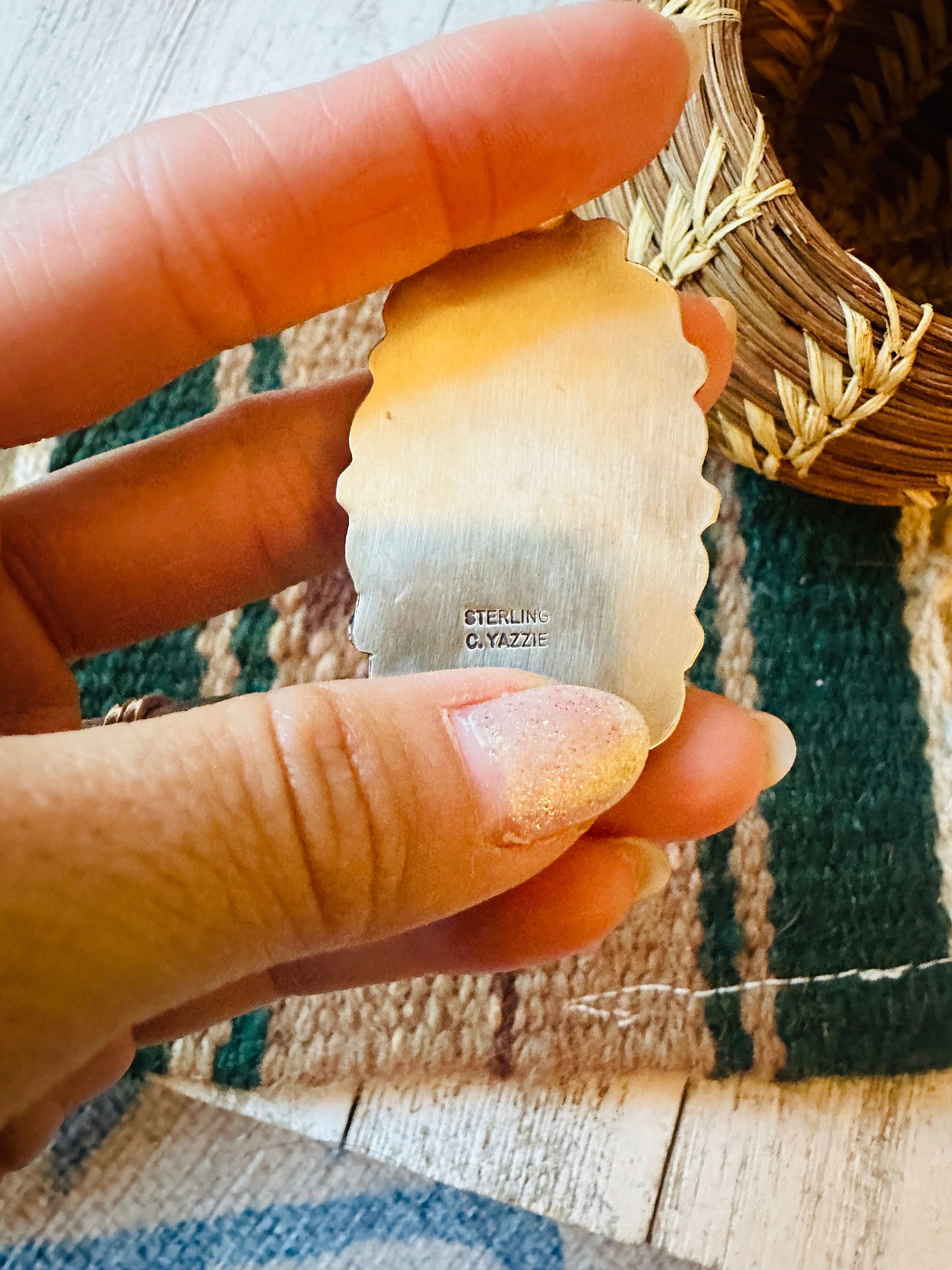 Gorgeous Navajo Sterling Silver and Queen Pink Conch Shell Cluster Pendant. Such beautiful craftsmanship on this piece! Pendant measures 2 7/8 inches long and 1 1/4 inches wide. Bale measures 3/8 of an inch across. Stamped Sterling and signed by the artist.
