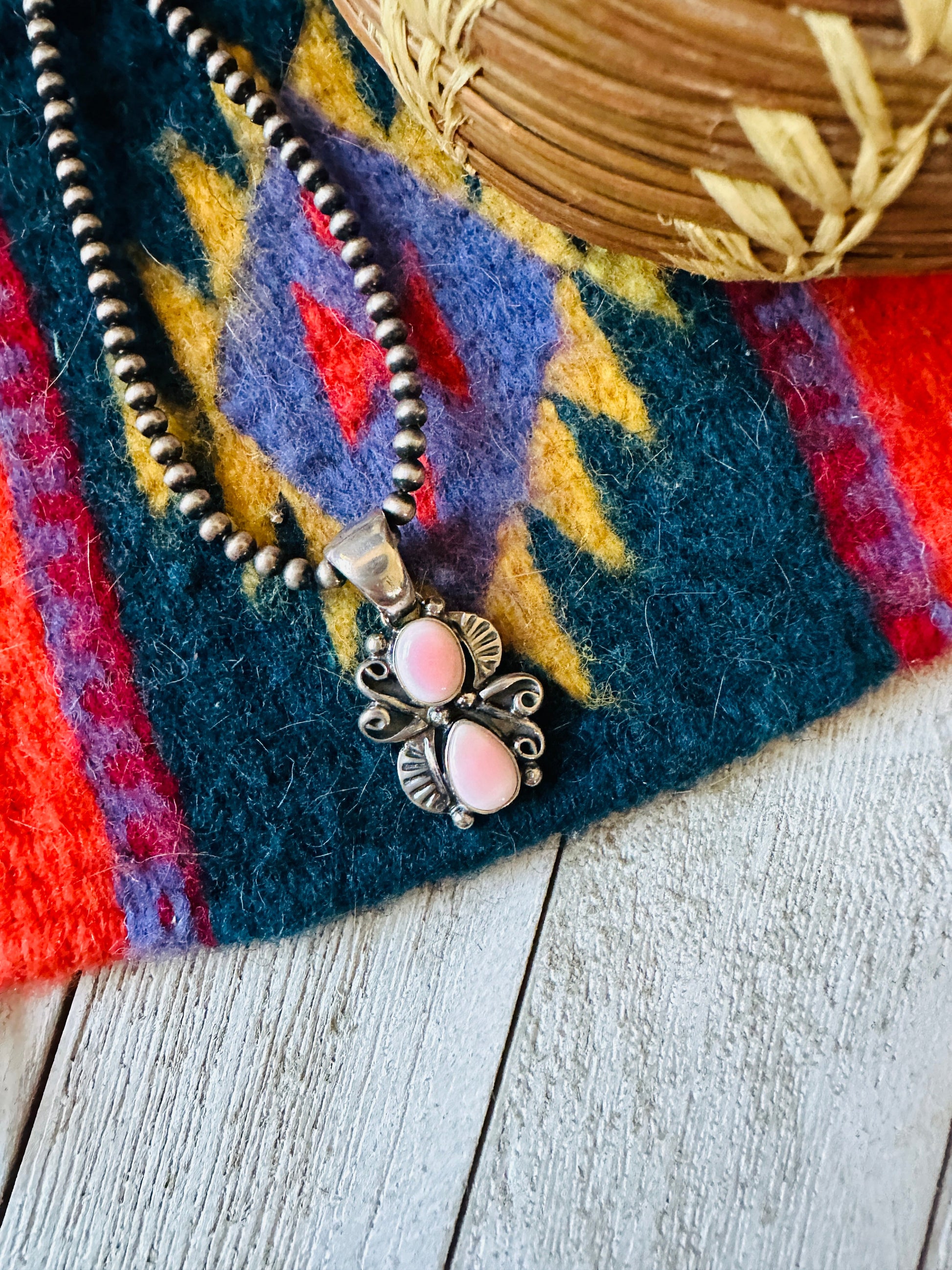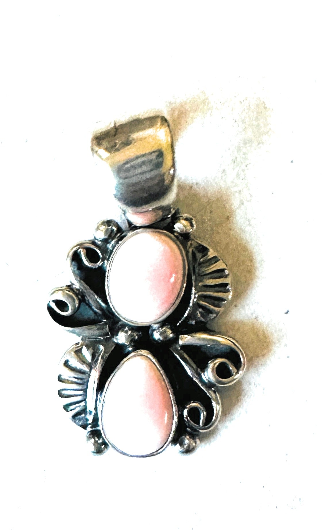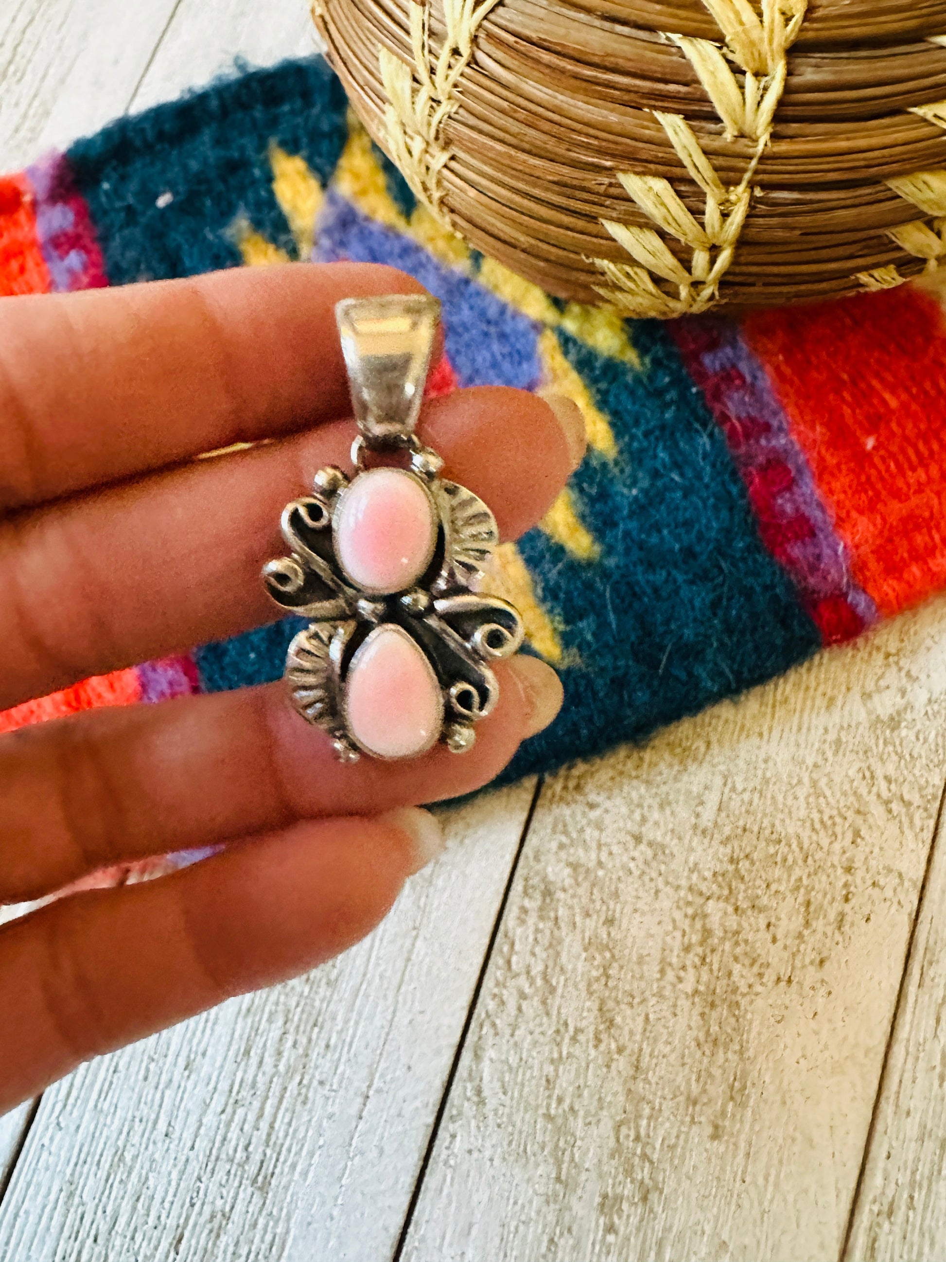 Navajo Queen Pink Conch Shell & Sterling Silver Two-Stone Pendant