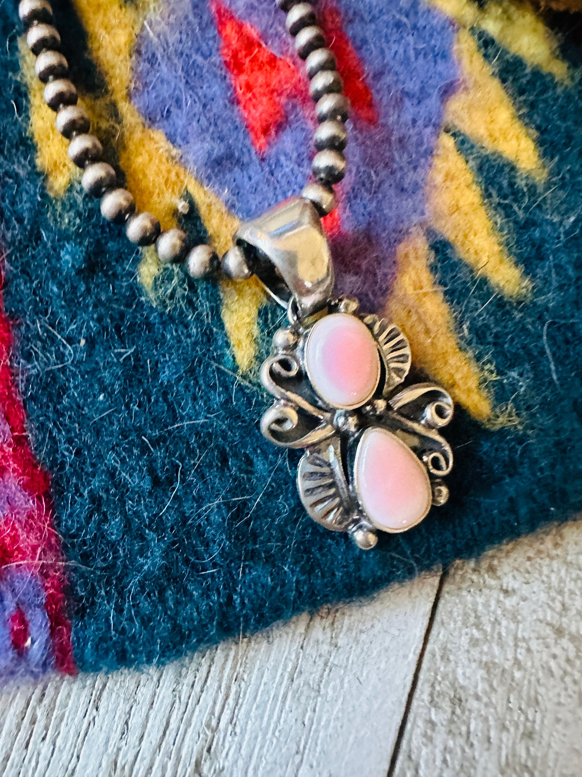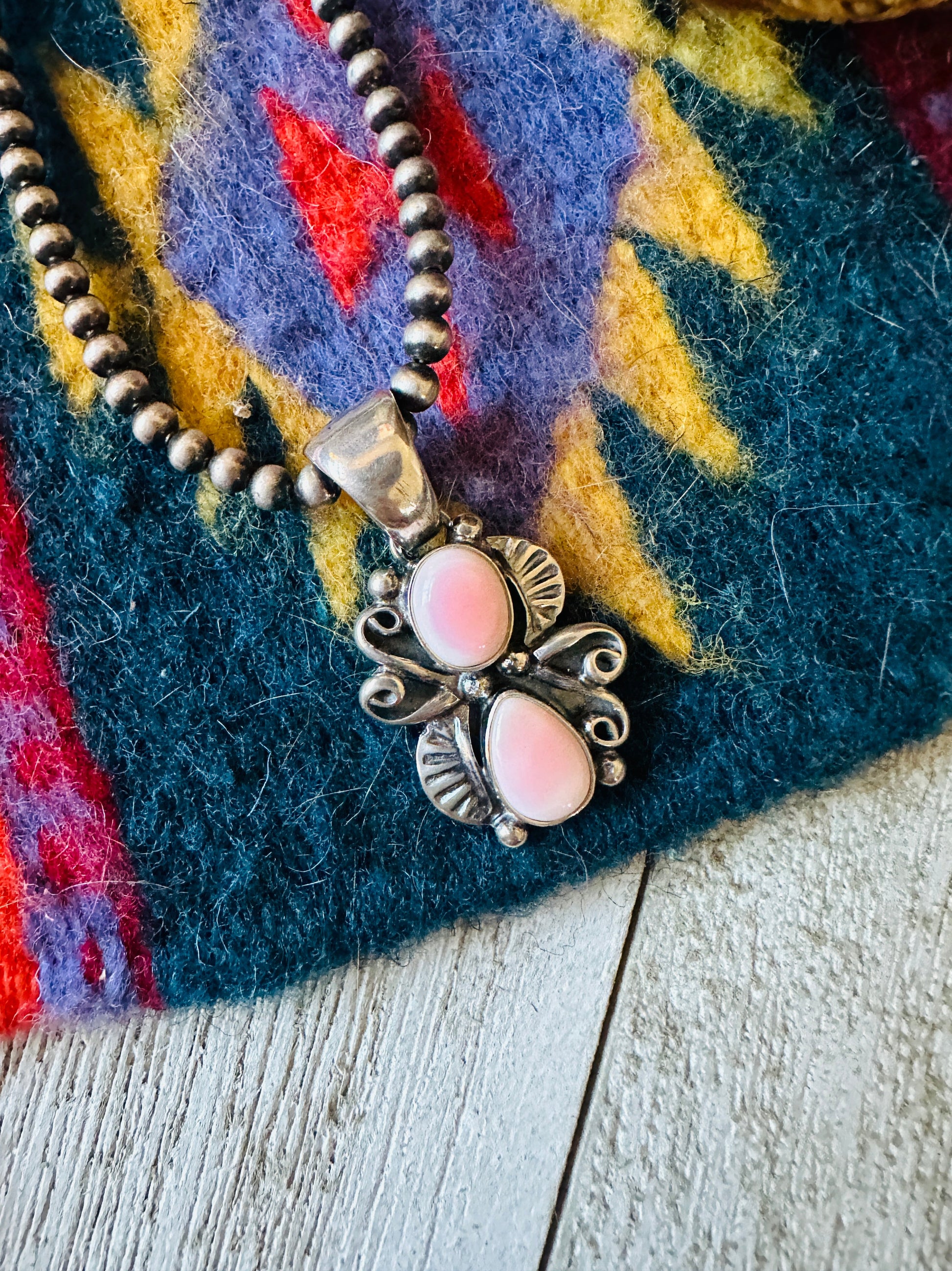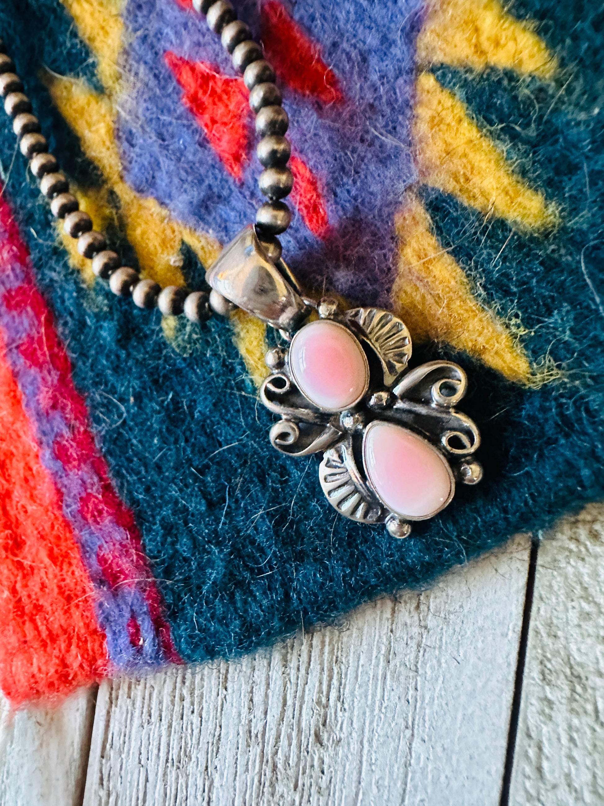 Navajo Queen Pink Conch Shell & Sterling Silver Two-Stone Pendant