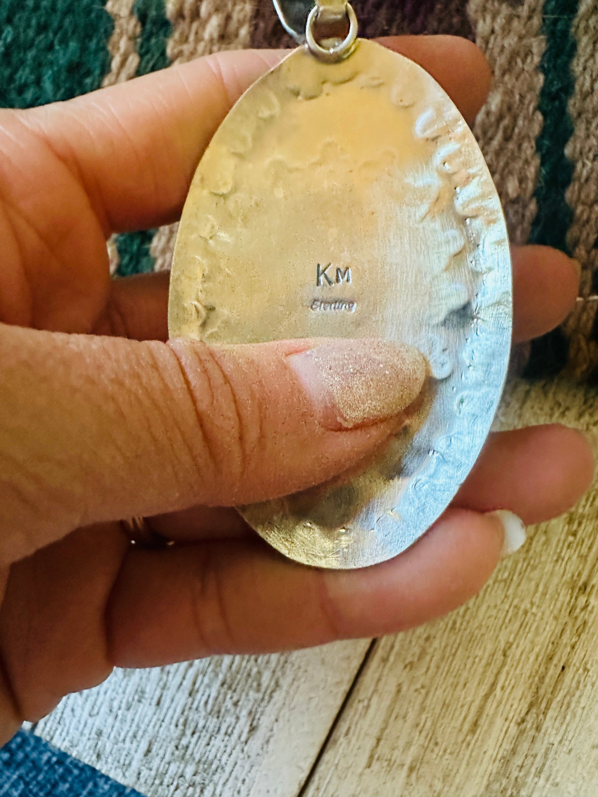 Navajo Queen Pink Conch Shell & Sterling Silver Concho Pendant