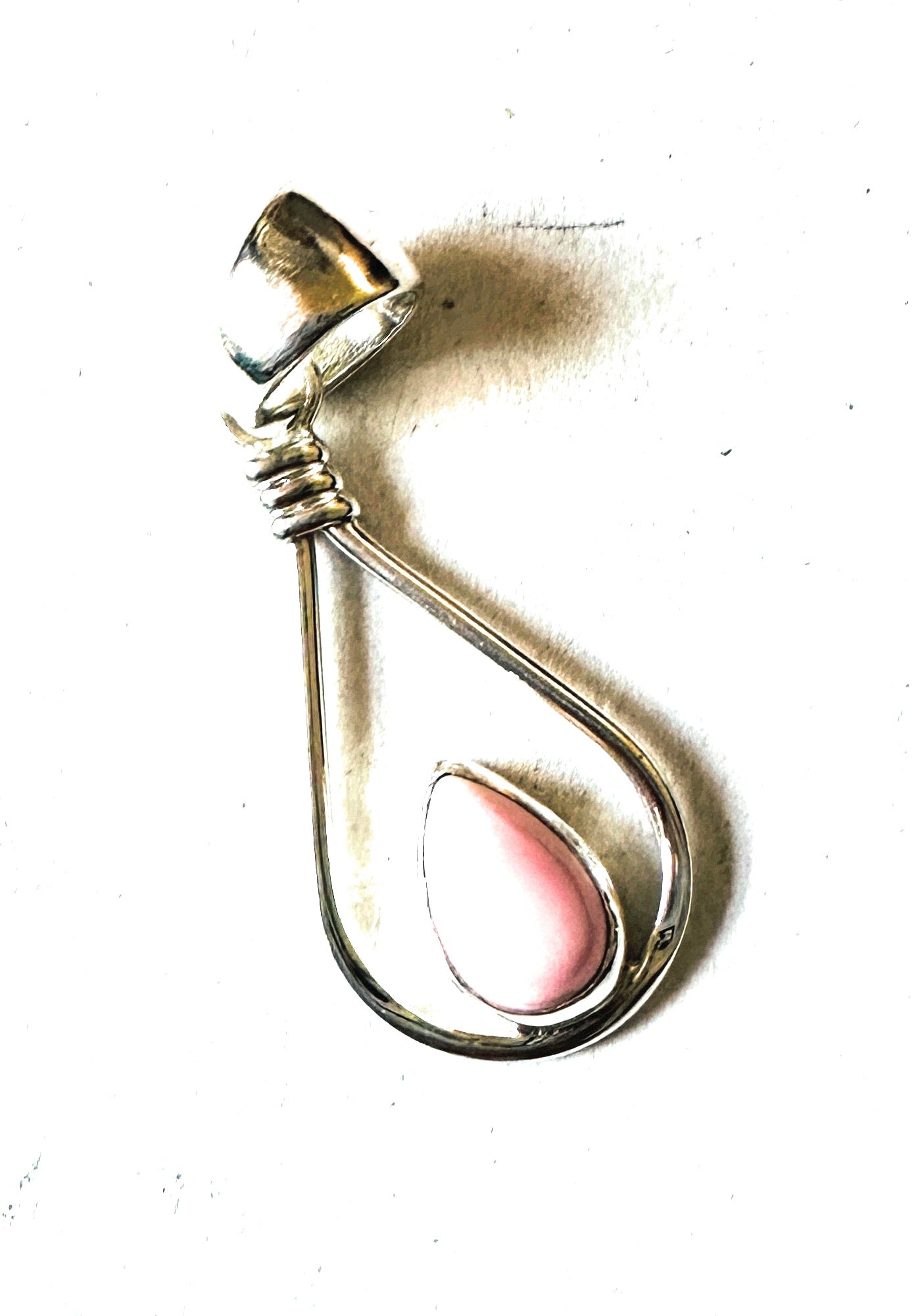 Navajo Queen Pink Conch Shell & Sterling Silver Teardrop Pendant
