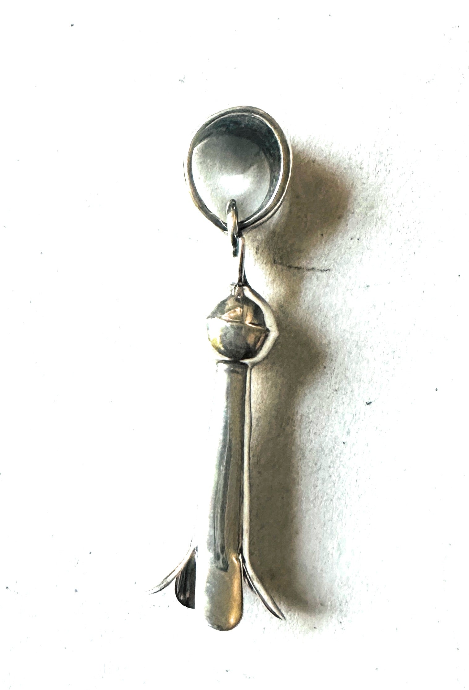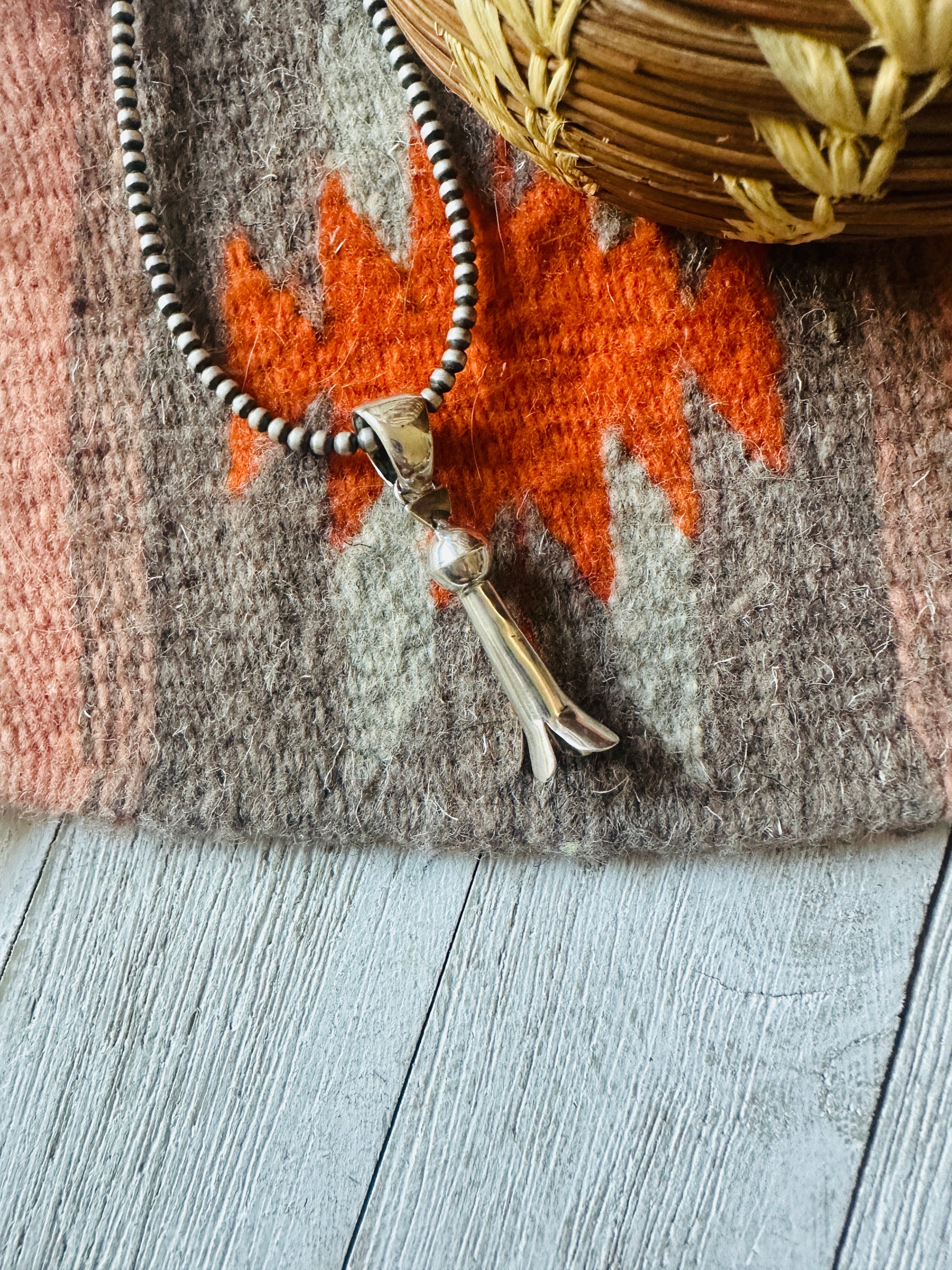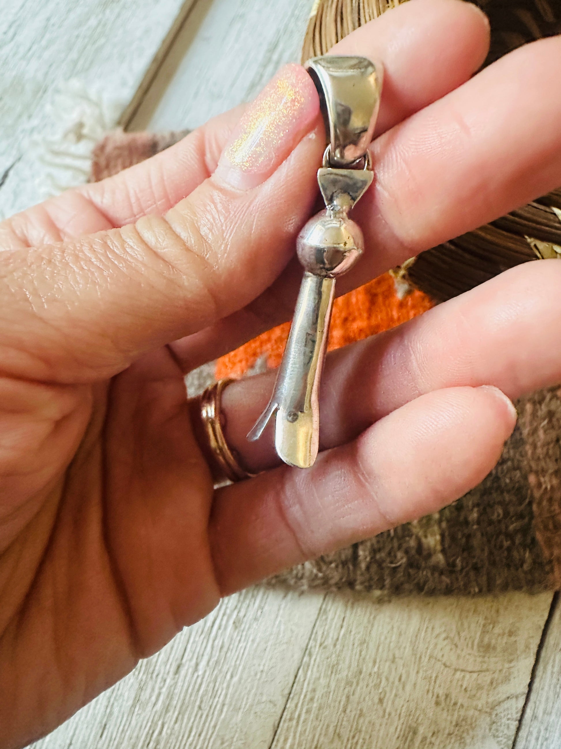 Navajo Handmade Sterling Silver Blossom Pendant. Such beautiful craftsmanship on this pendant! Pendant measures 1 7/8 inches long and 1/4 of an inch wide. Bale measures just under 3/8 of an inch across.