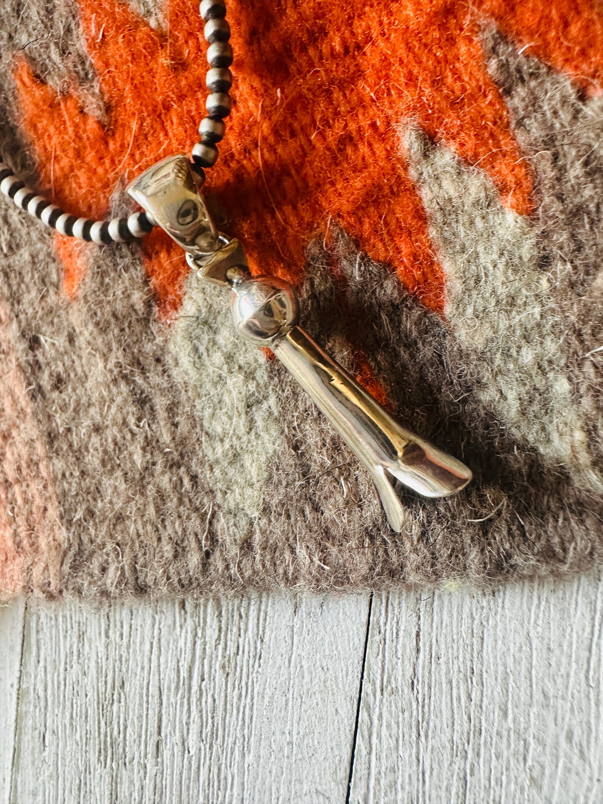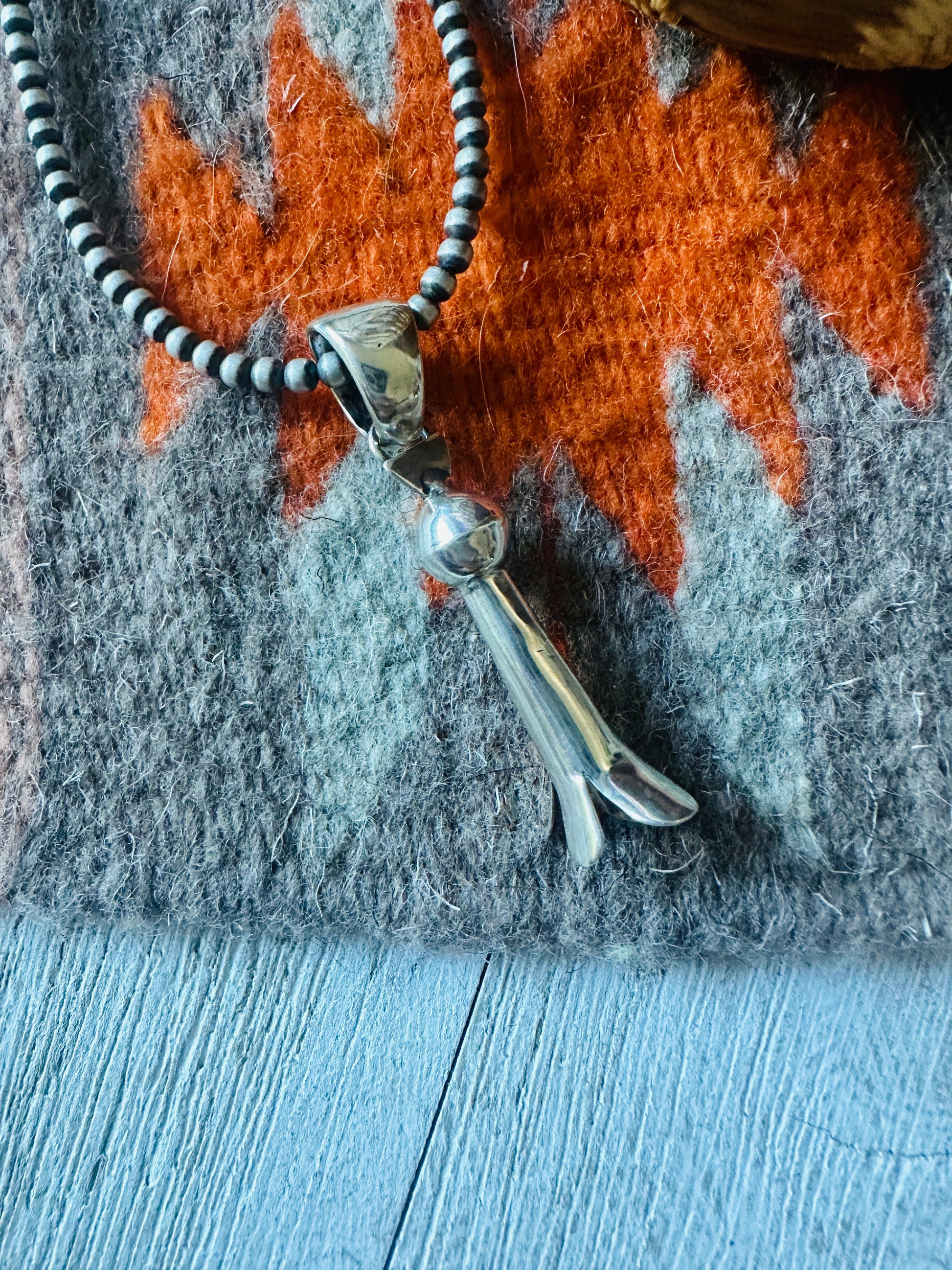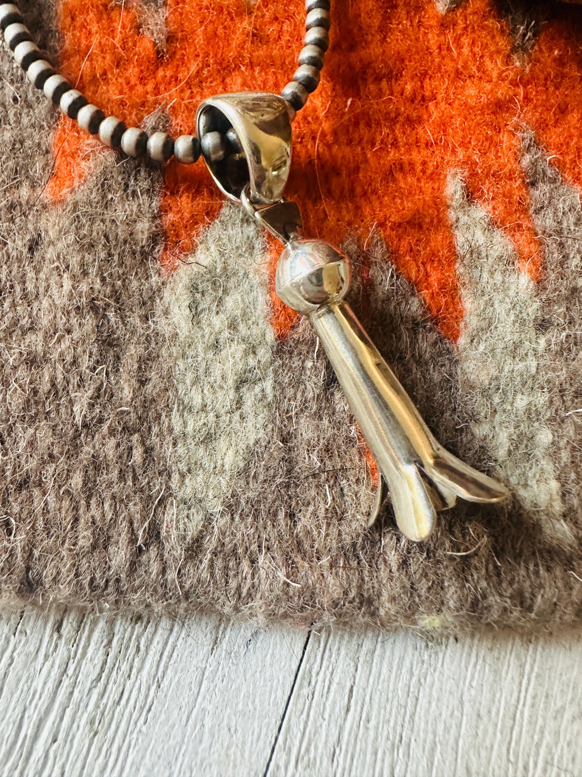 Navajo Handmade Sterling Silver Blossom Pendant. Such beautiful craftsmanship on this pendant! Pendant measures 1 7/8 inches long and 1/4 of an inch wide. Bale measures just under 3/8 of an inch across.