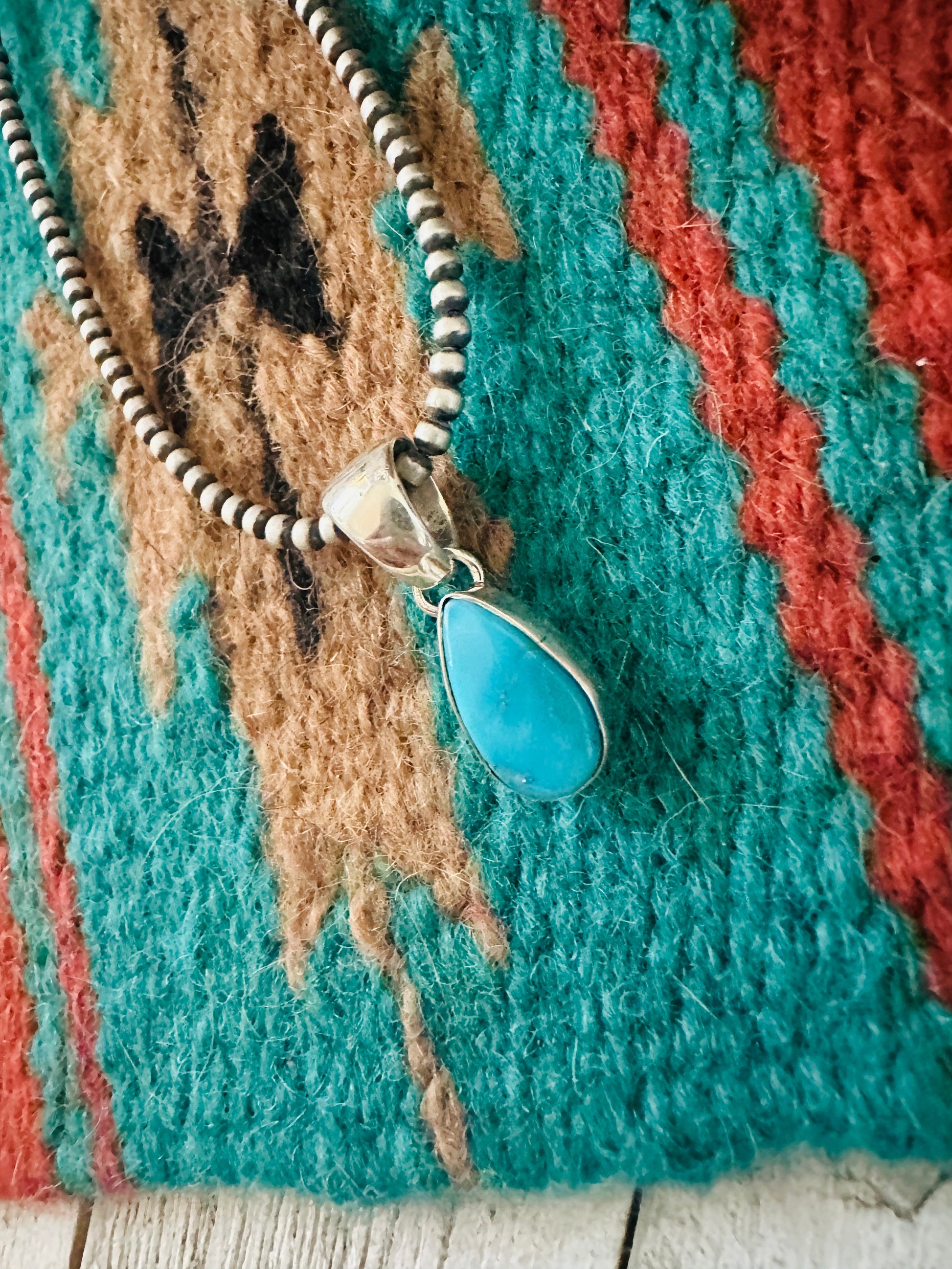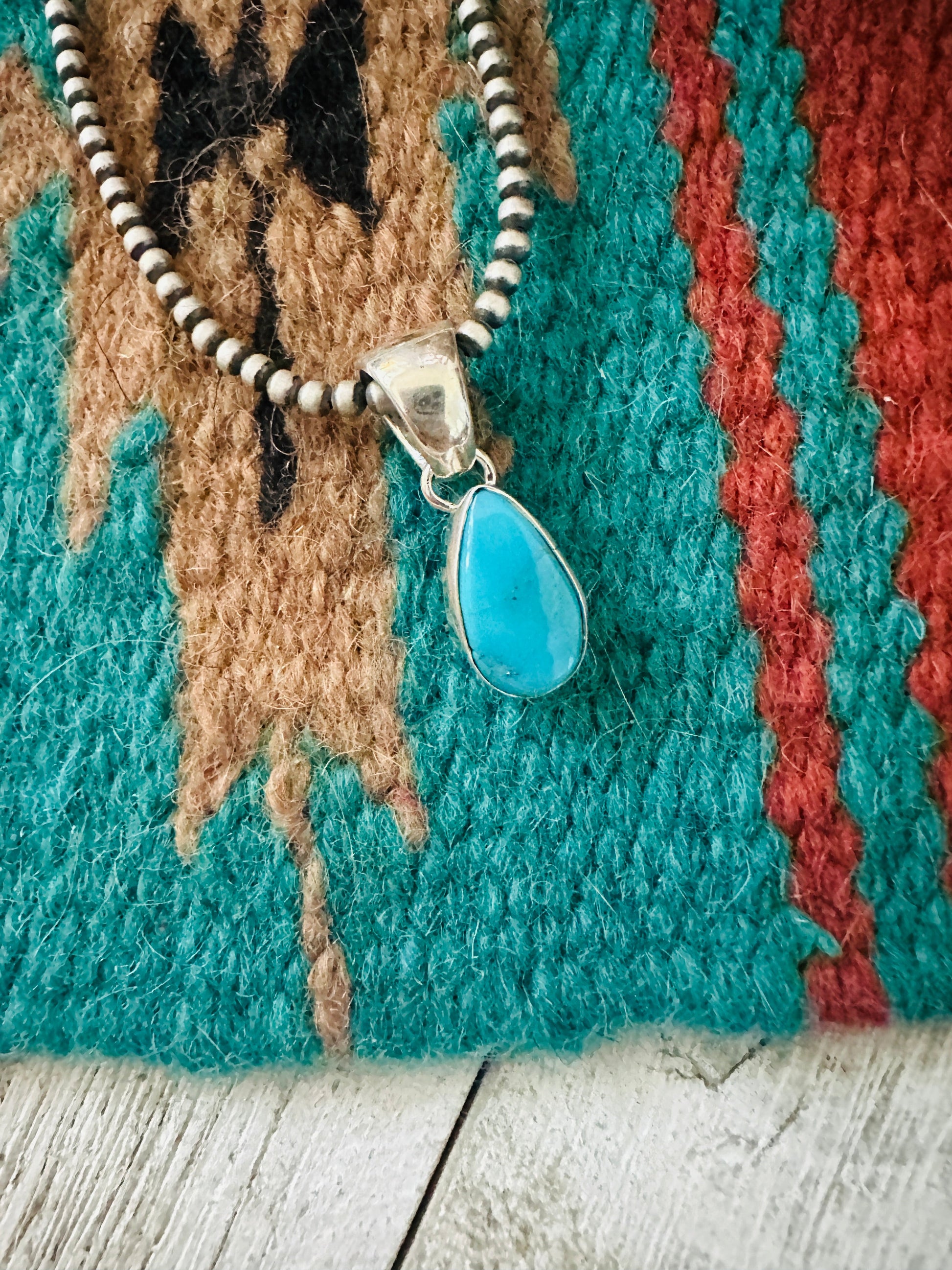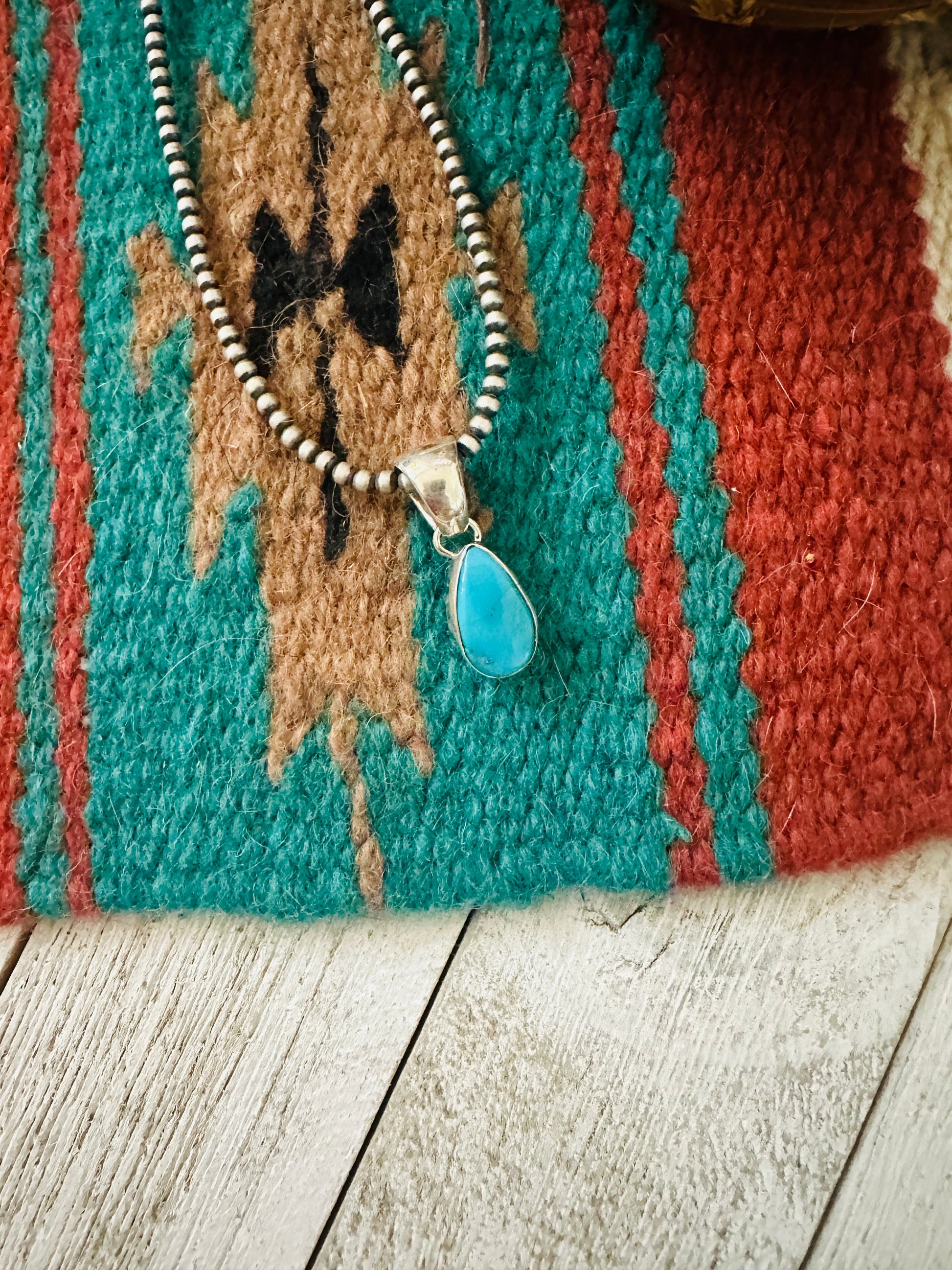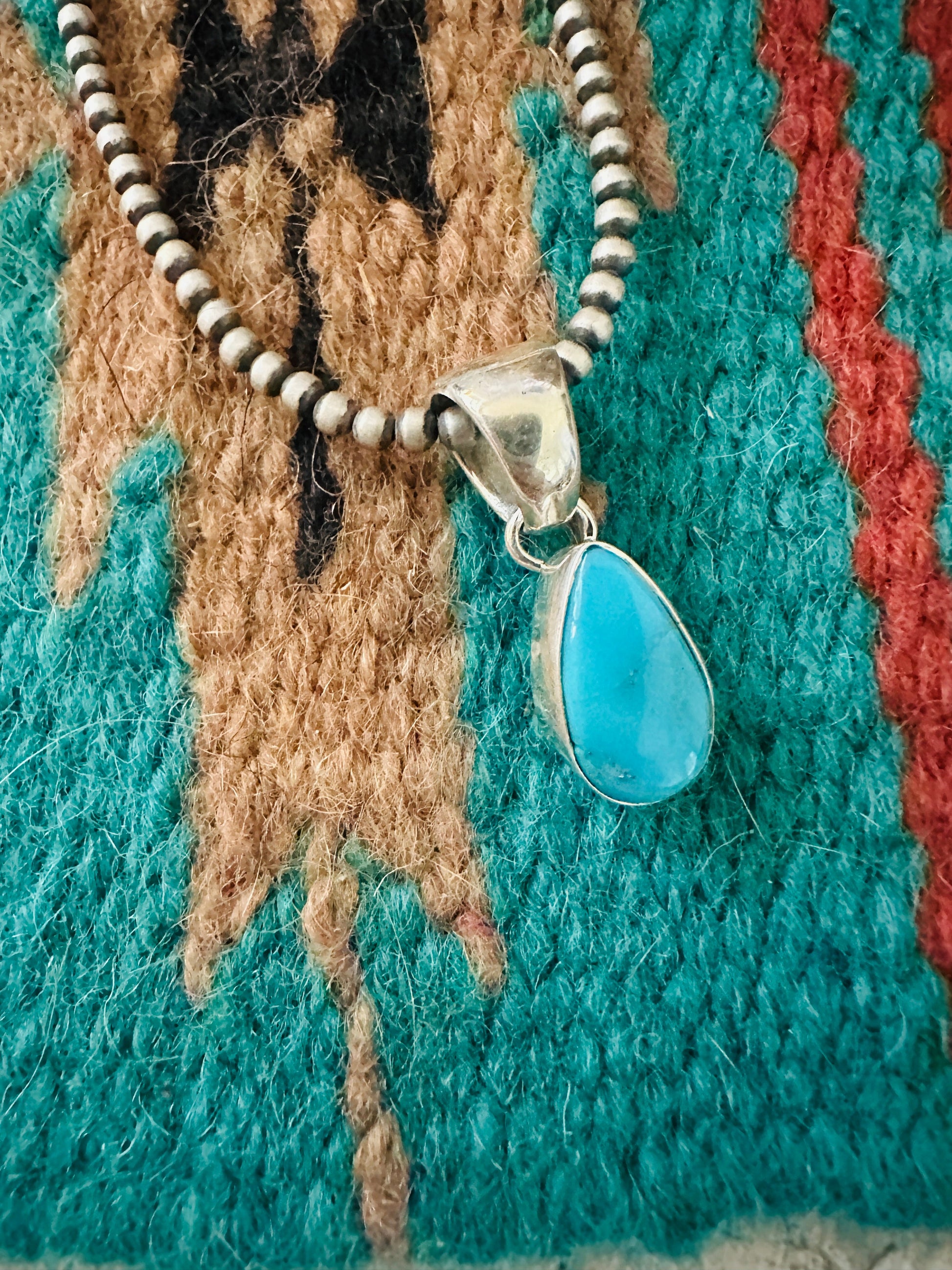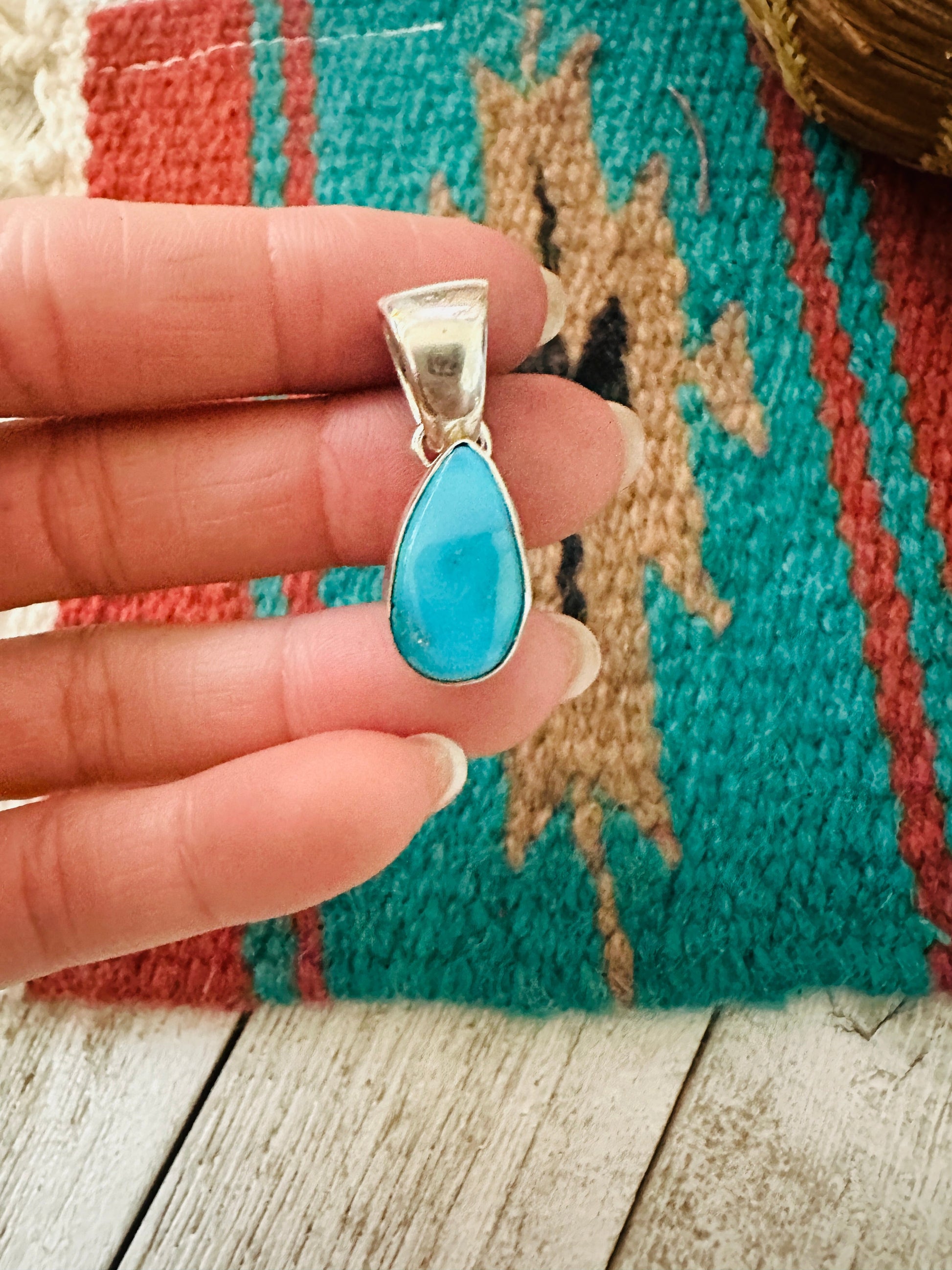 Navajo Turquoise & Sterling Silver Teardrop Pendant