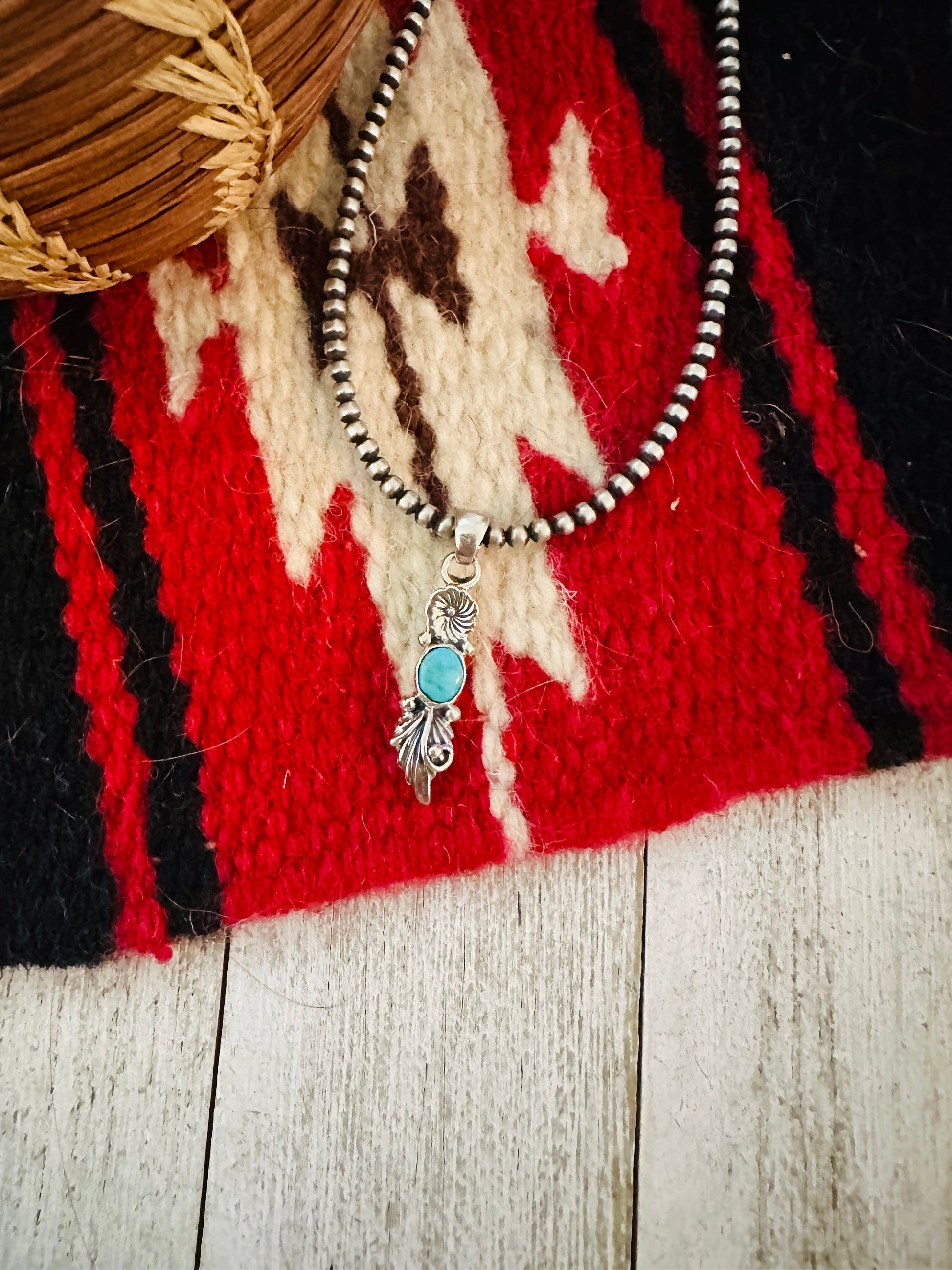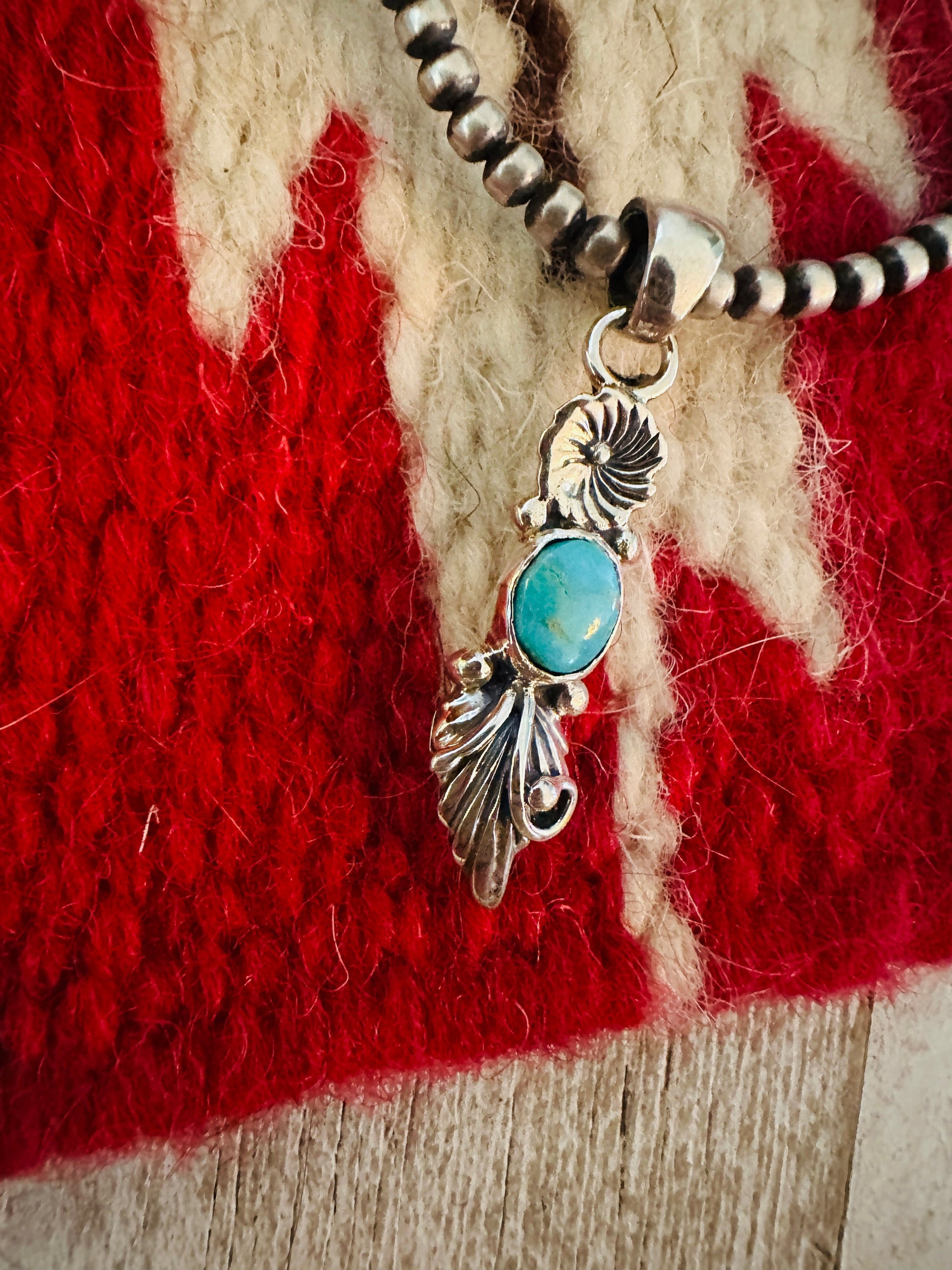Navajo Turquoise & Sterling Silver Flower Pendant
