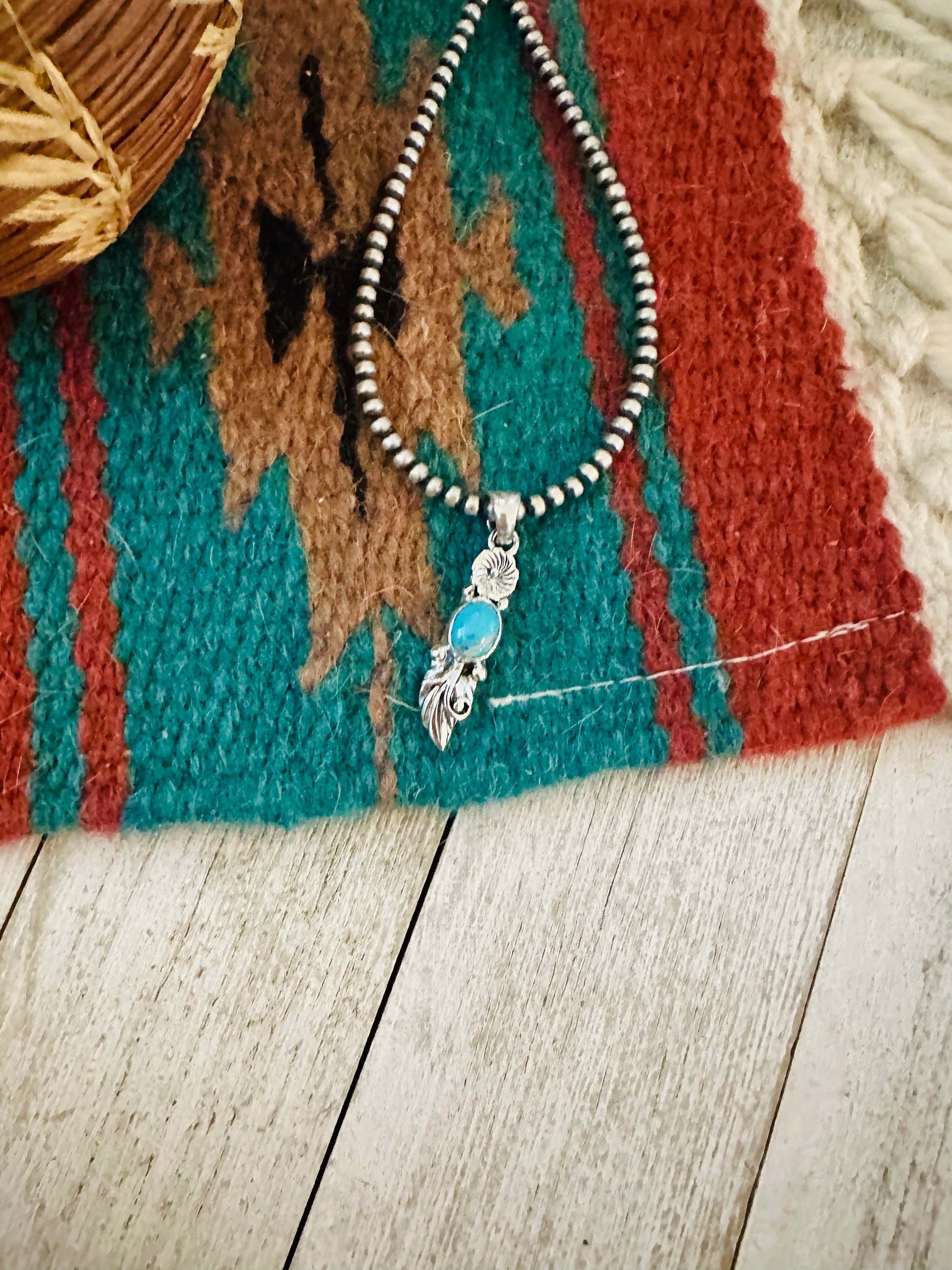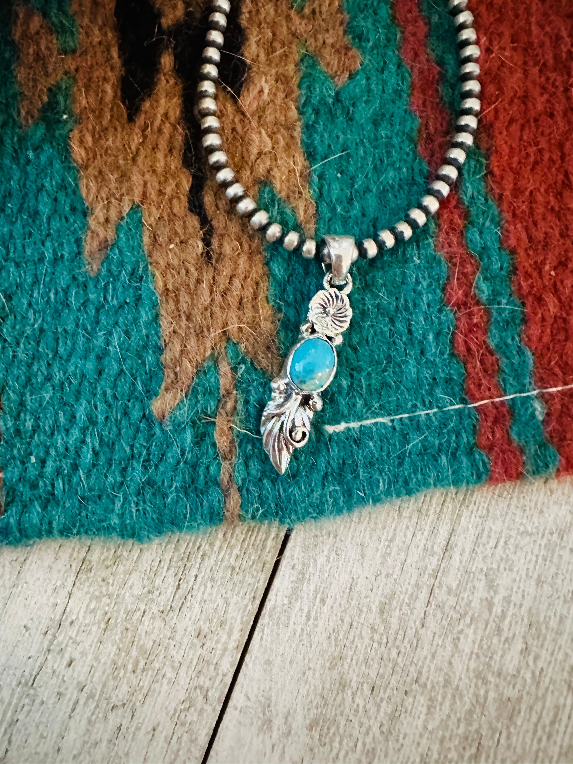 Navajo Turquoise & Sterling Silver Flower Pendant