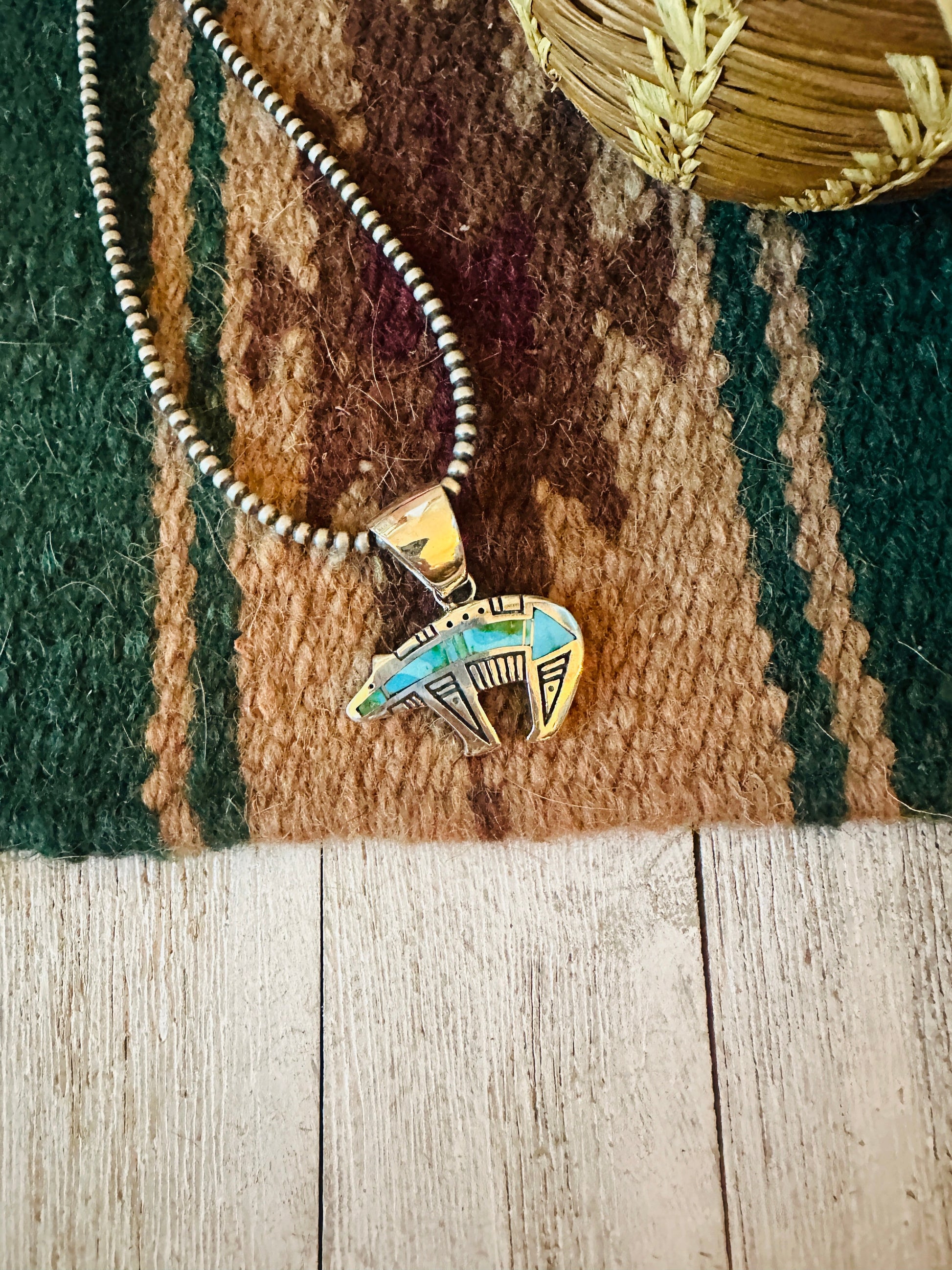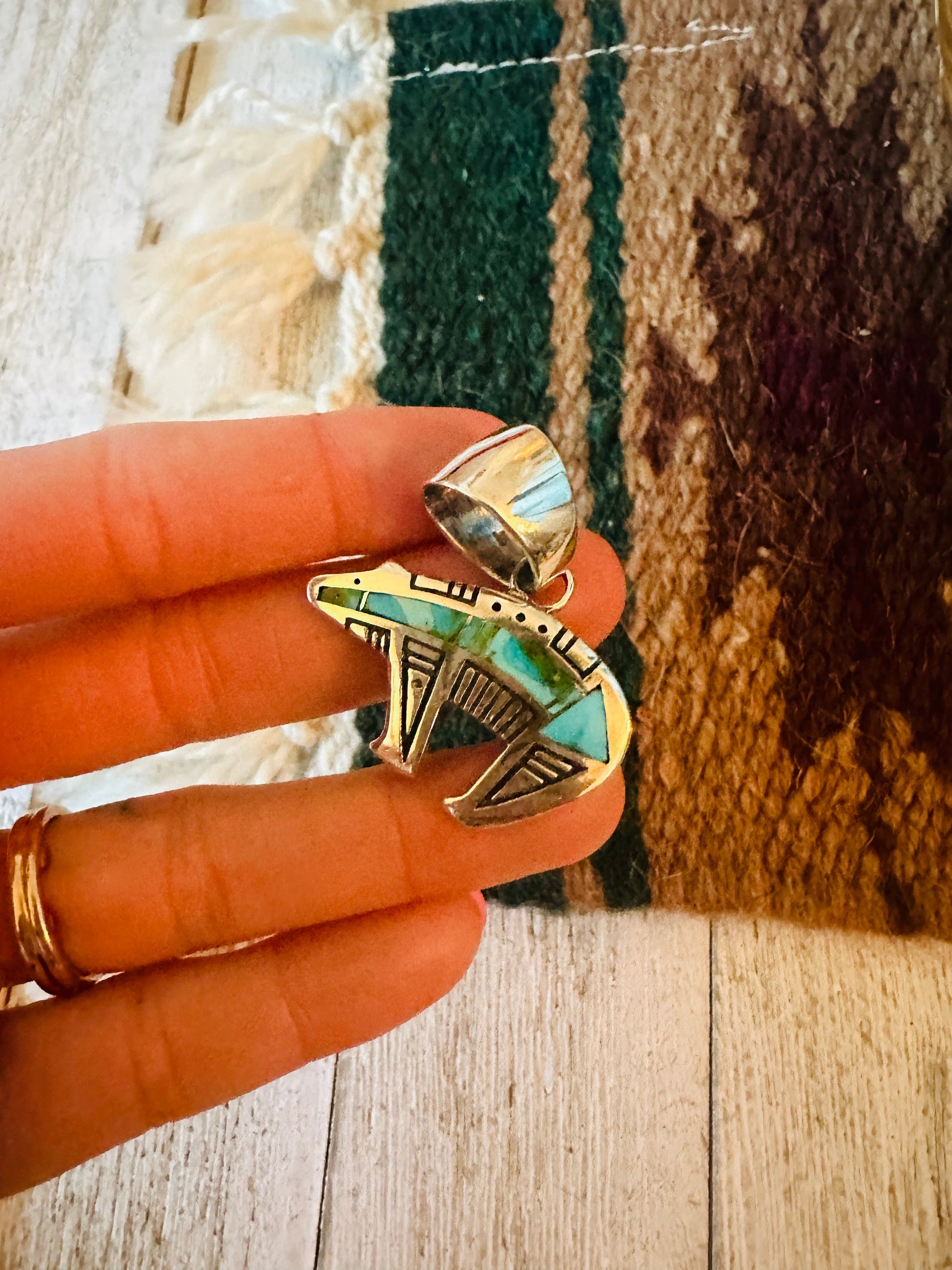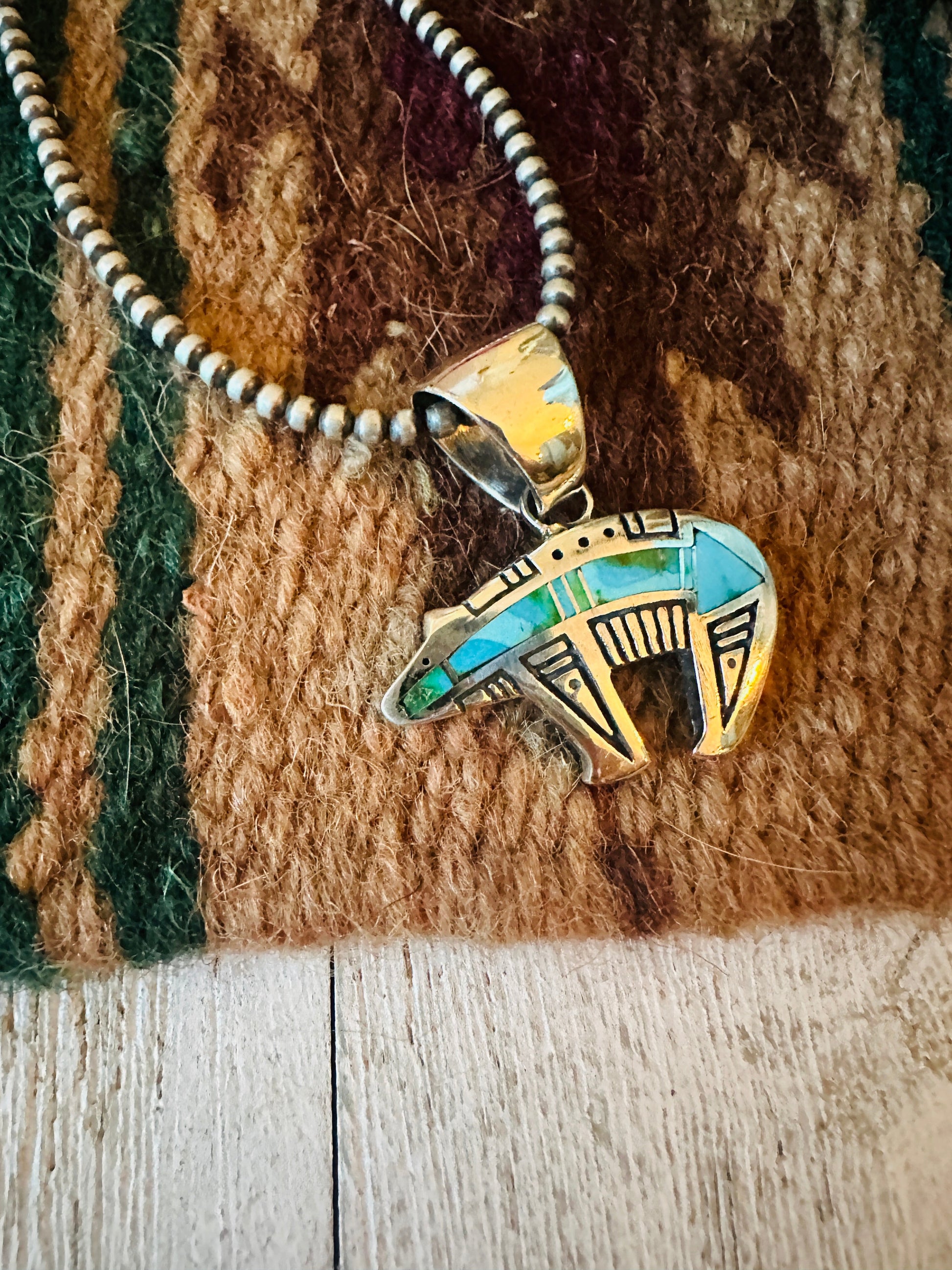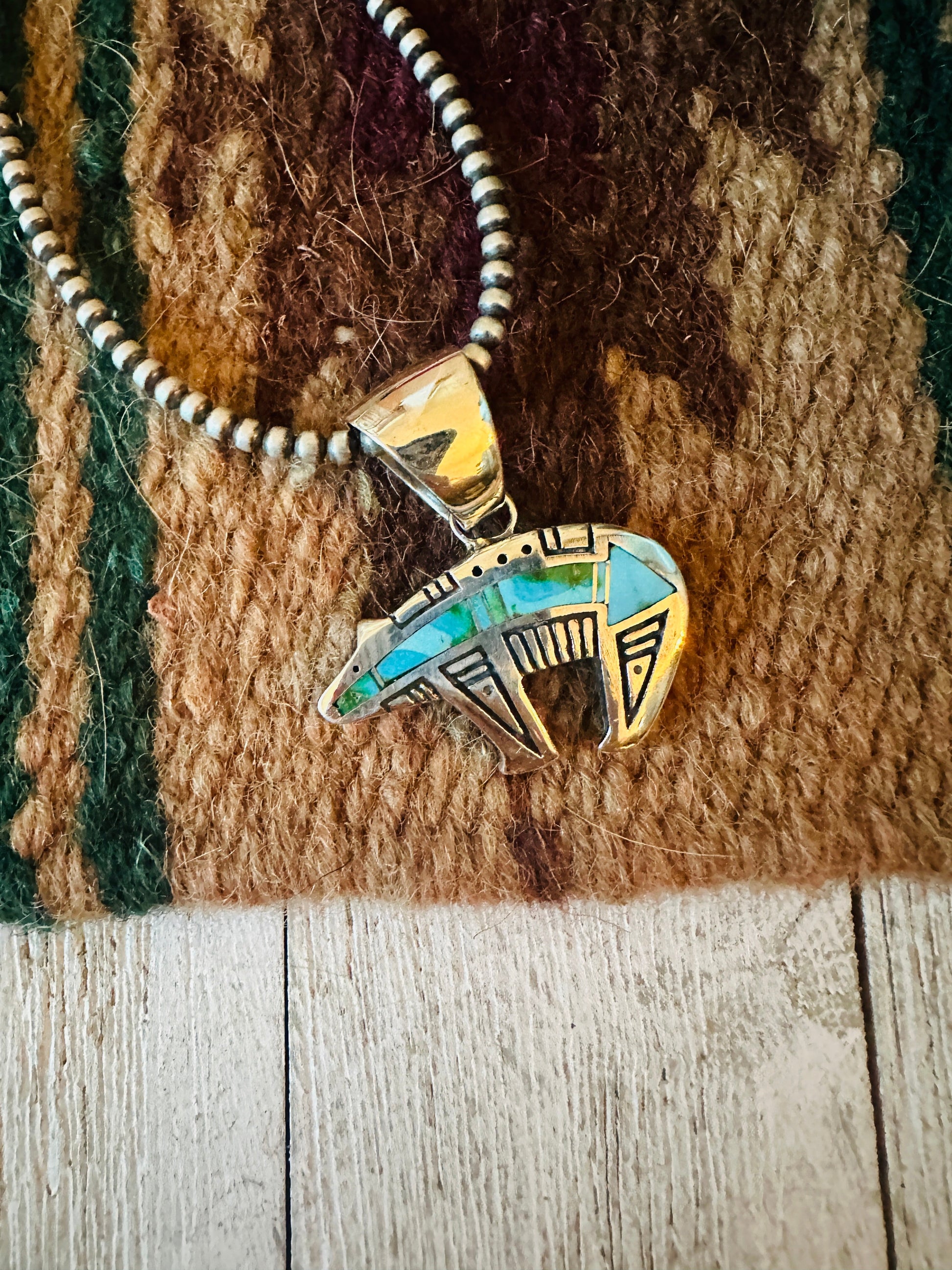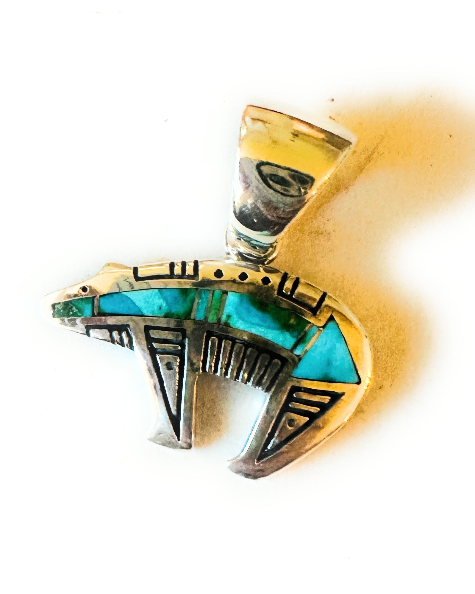 Navajo Sonoran Mountain Turquoise & Sterling Silver Bear Pendant