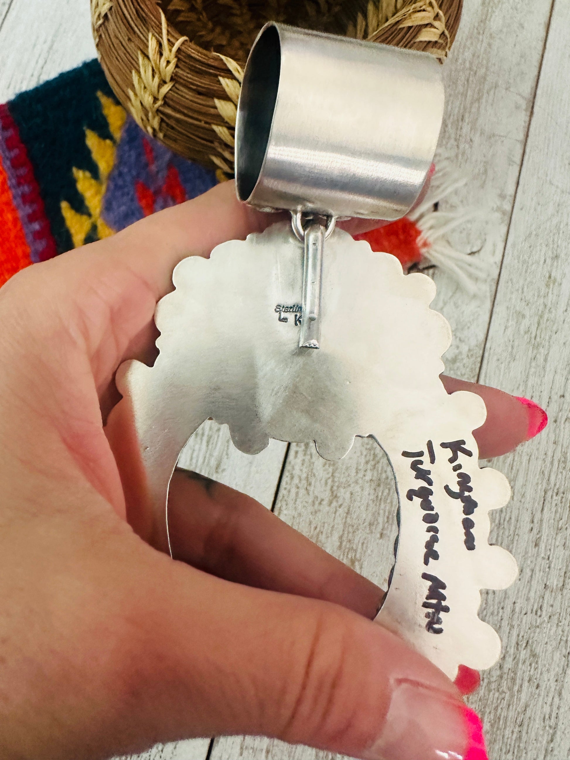 Navajo Kingman Turquoise Mountain & Sterling Silver Naja Pendant