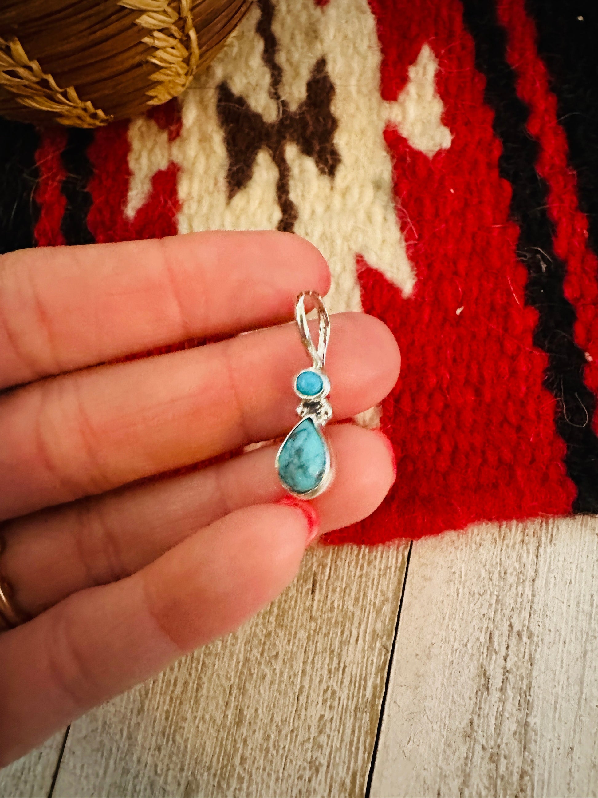Navajo Turquoise & Sterling Silver Two-Stone Pendant