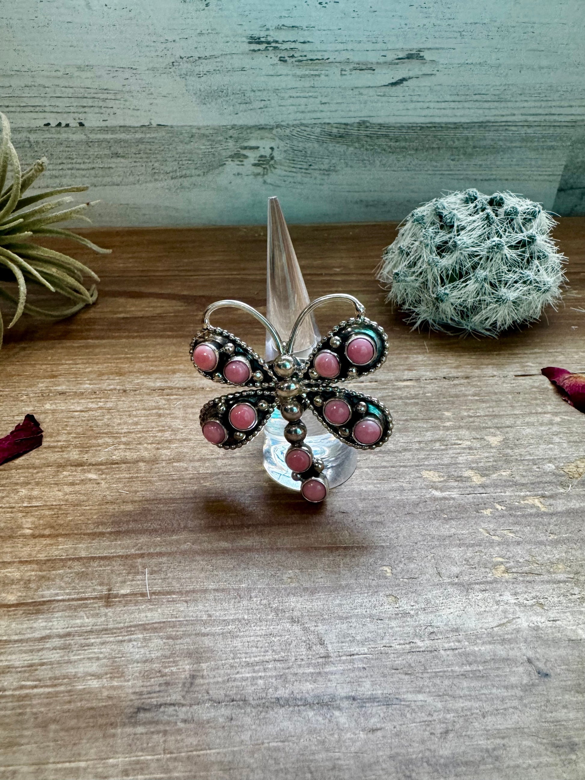 Dragonfly ring -size 7 - pink conch and sterling silver