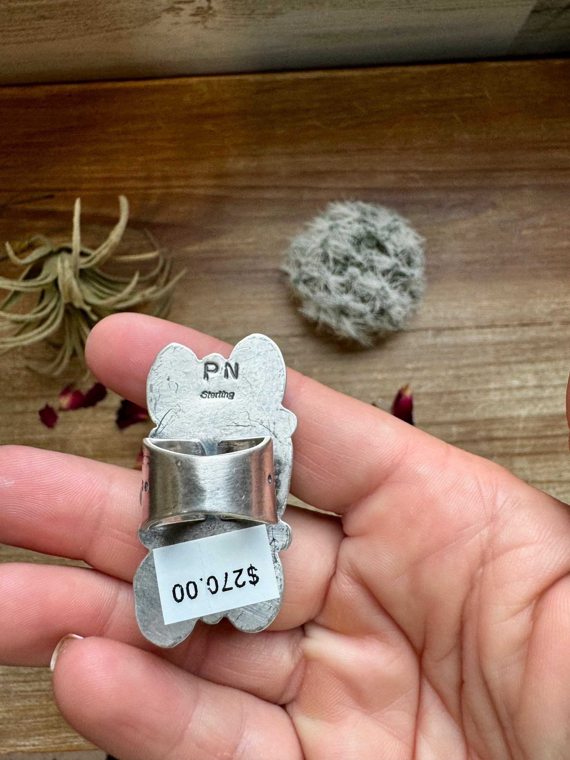 Long Ring- 6- Kingman turquoise ring and sterling silver