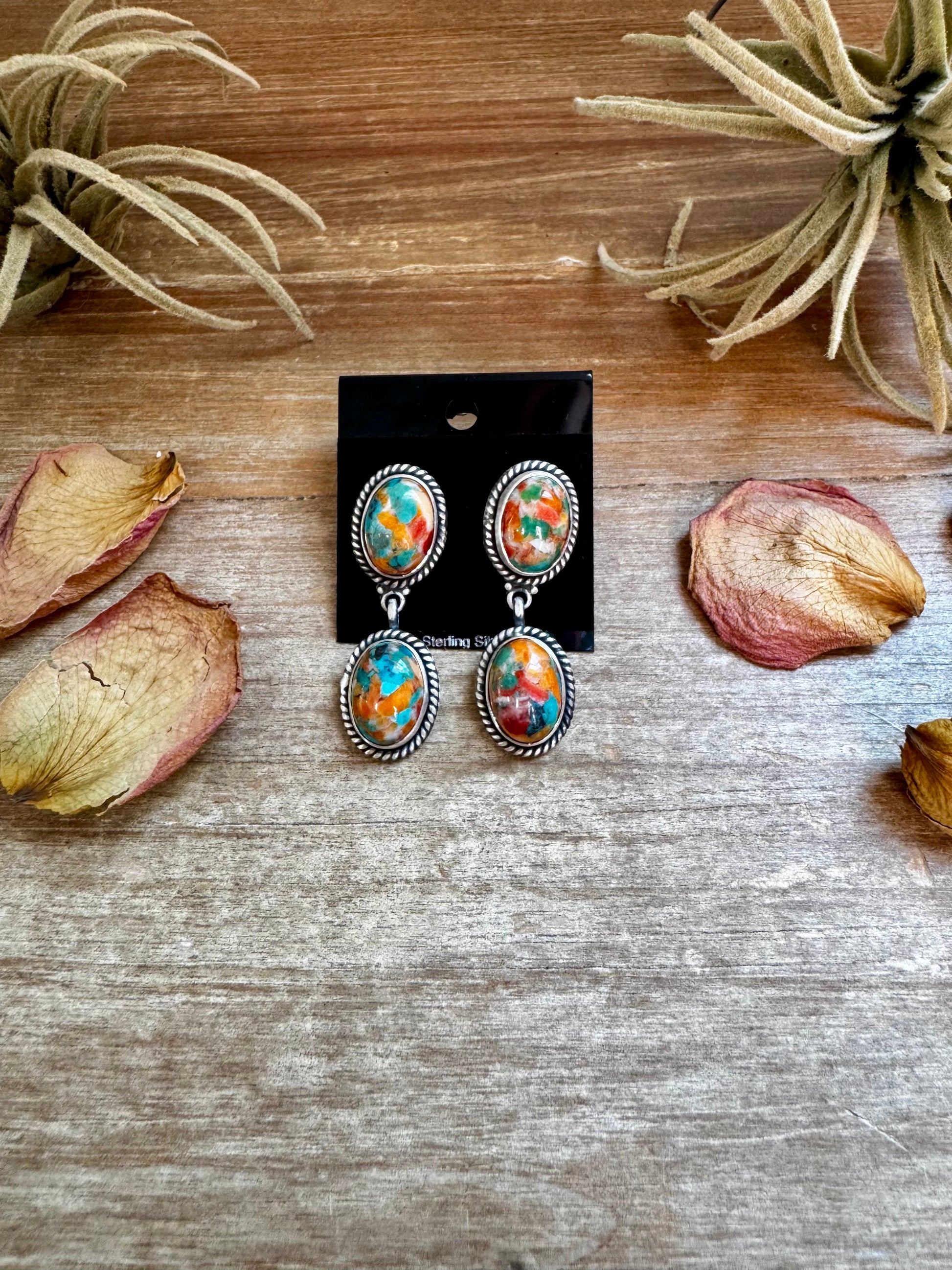 Mojave Spiny Oyster & Turquoise Dangle Earrings – Sterling Silver, USA Made, Post Top