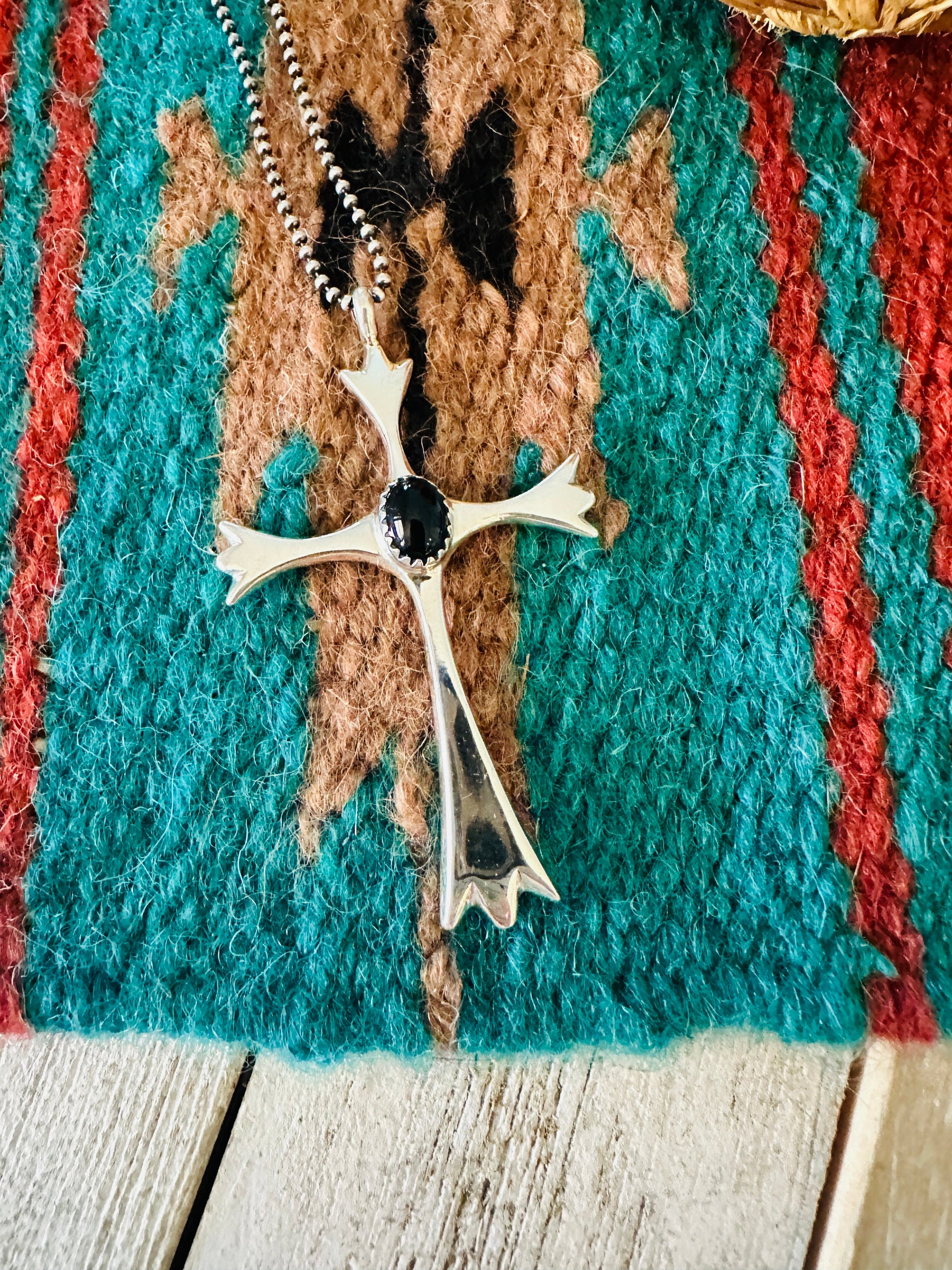 Navajo Black Onyx & Sterling Silver Cross Pendant