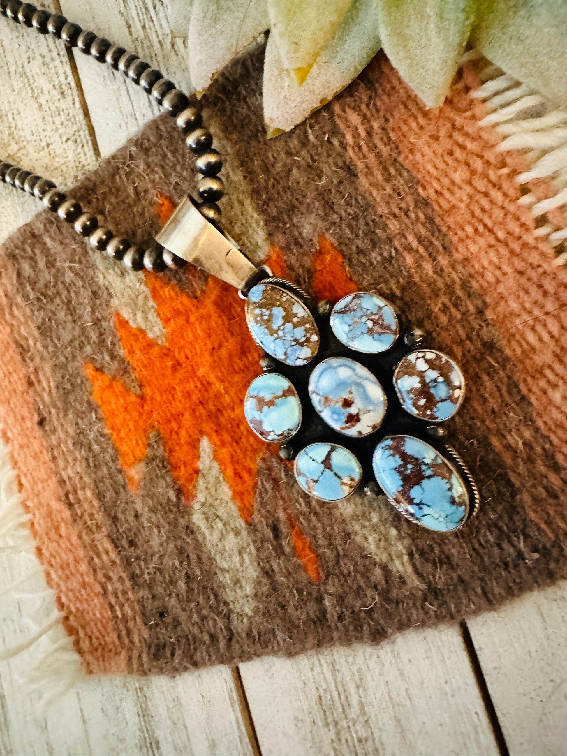Navajo Golden Hills Turquoise & Sterling Silver Cluster Pendant