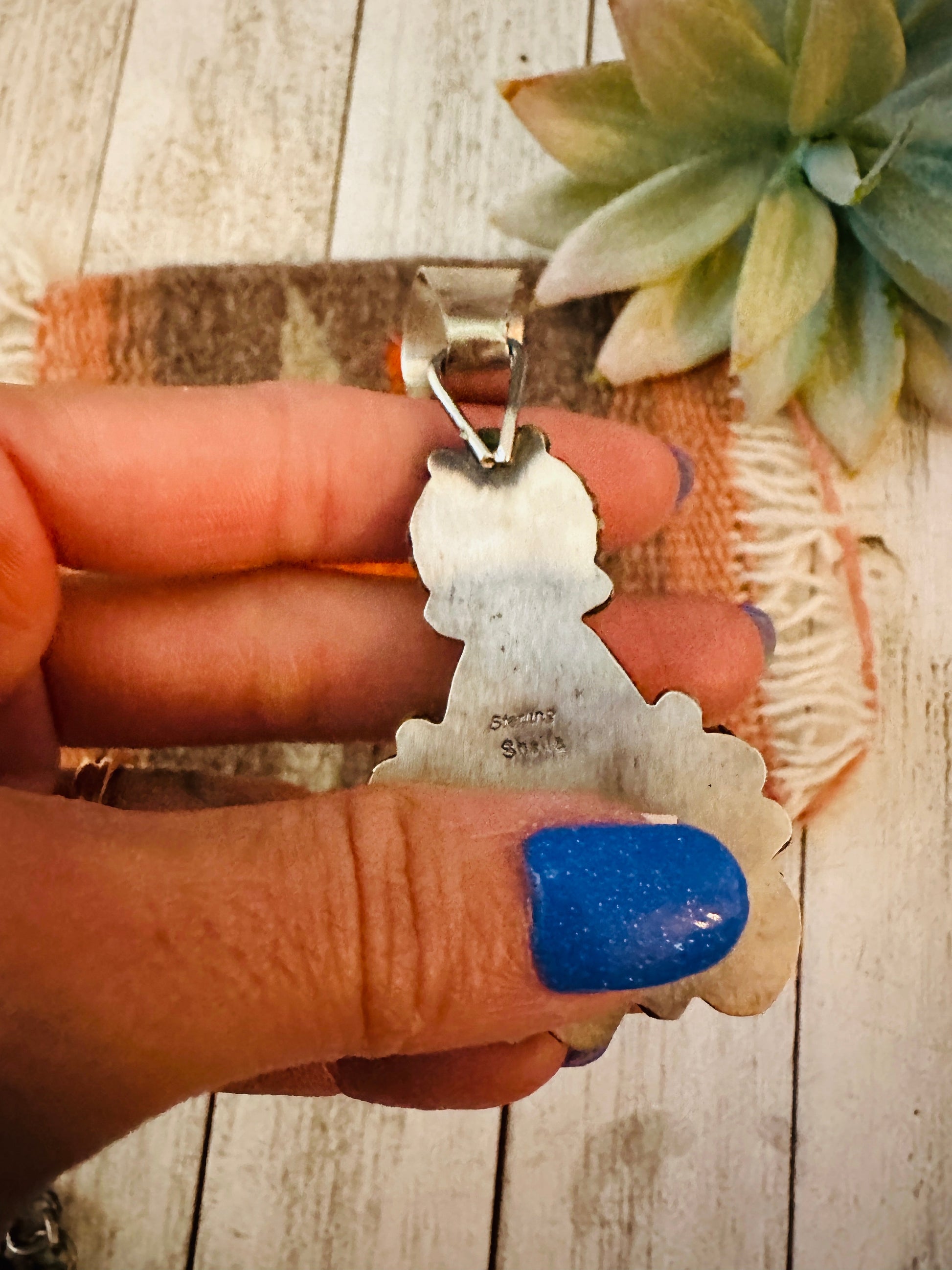 Gorgeous Navajo Sterling Silver and Golden Hills Turquoise Cluster Pendant. Such beautiful stones in this piece! Pendant measures 3 inches long and 1 1/2 inches wide. Bale is 1/2 of an inch across. Stamped Sterling and signed by the artist Sheila Becenti.