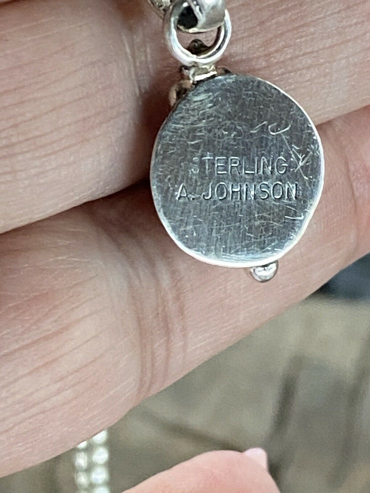 This wonderful Navajo pendant is made of Sterling Silver and Kingman Turquoise. It is 1 inch long and 1/2 of an inch wide. A sweet pendant for your favorite chain. Signed and stamped. Due to nature of natural stones will slightly vary. Pendant only.