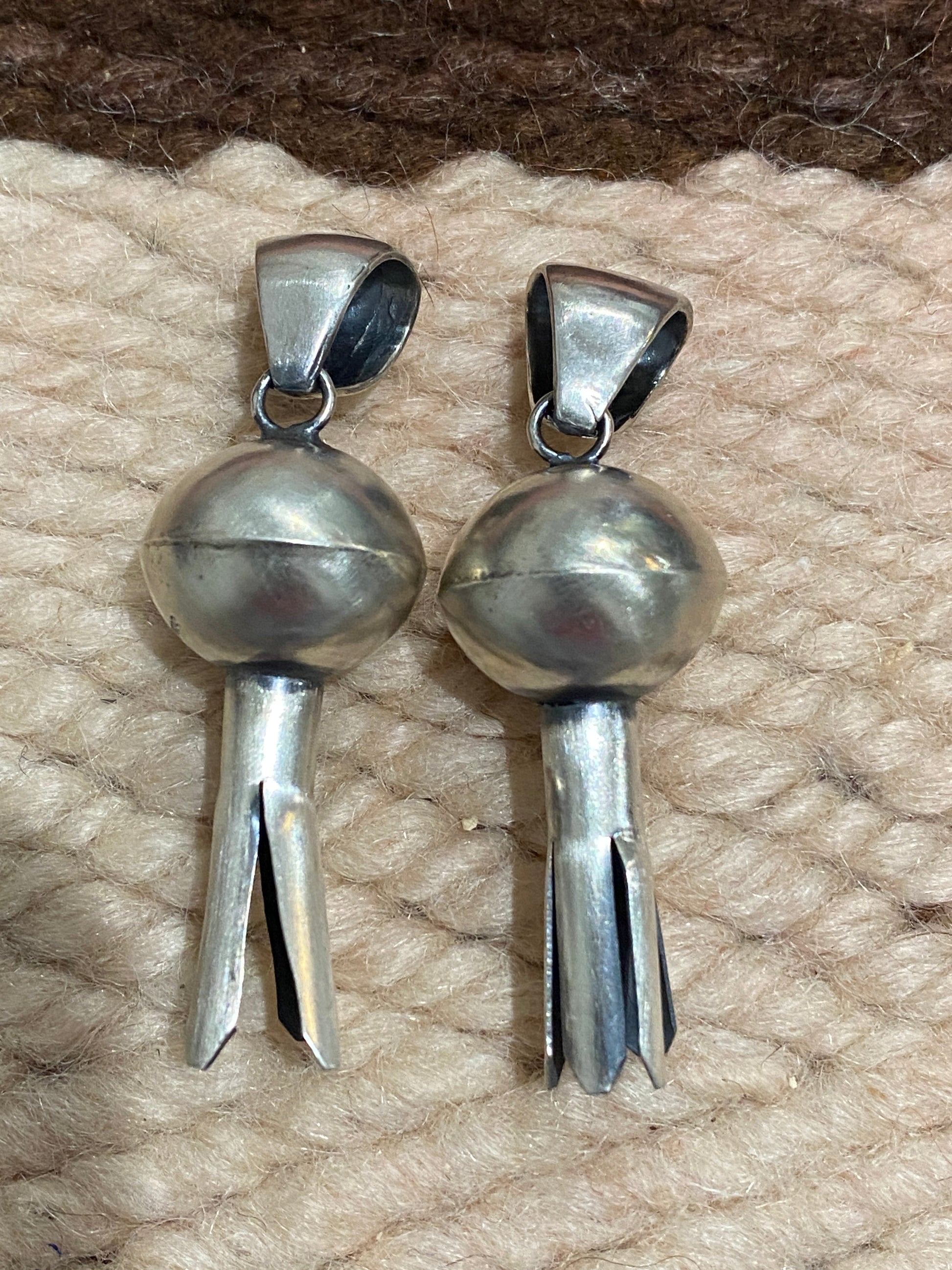 Beautiful Navajo Sterling Silver Blossom Pendant. Measuring 2 1/4 inches long and 3/4 of an inch wide. Perfect for your favorite beads or chain. Pretty by itself or layered with your favorites. Pendant Only. Listing is for one blossom and each will vary slightly due to the fact they are handmade.