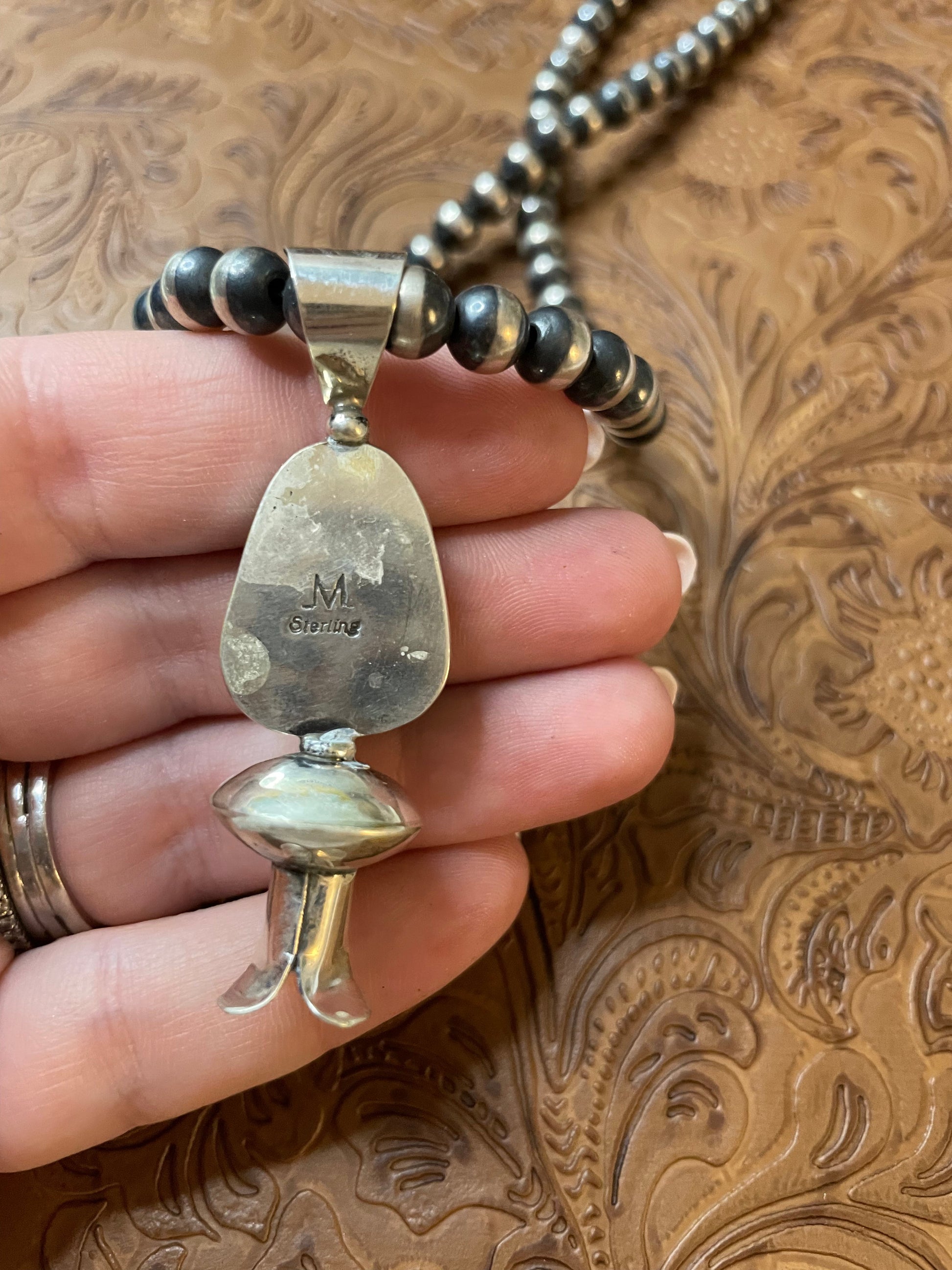 Navajo Handmade Sterling Silver Blue Turquoise Blossom Pendant