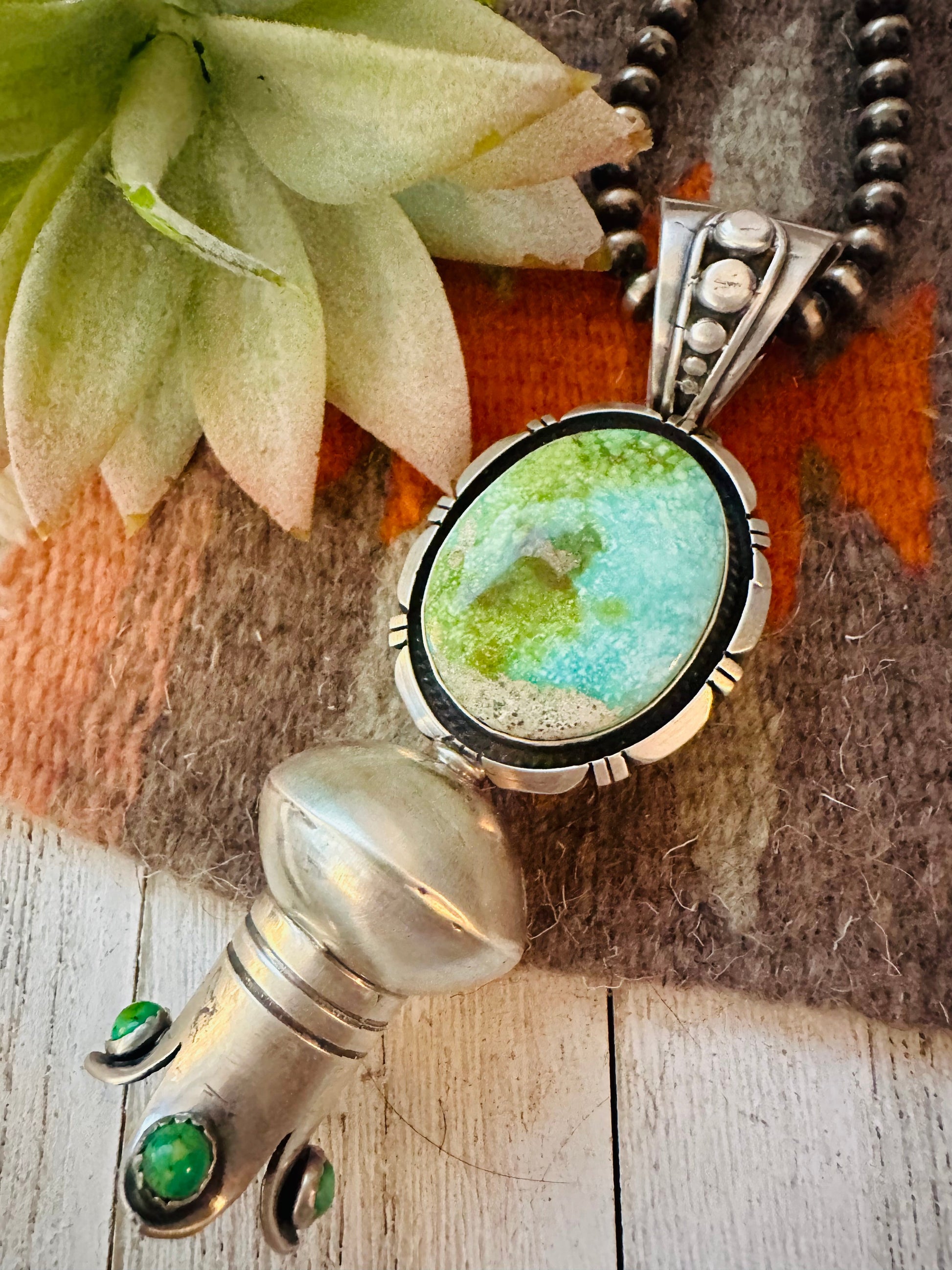 Navajo Sterling Silver & Turquoise Blossom Pendant by Thomas Francisco