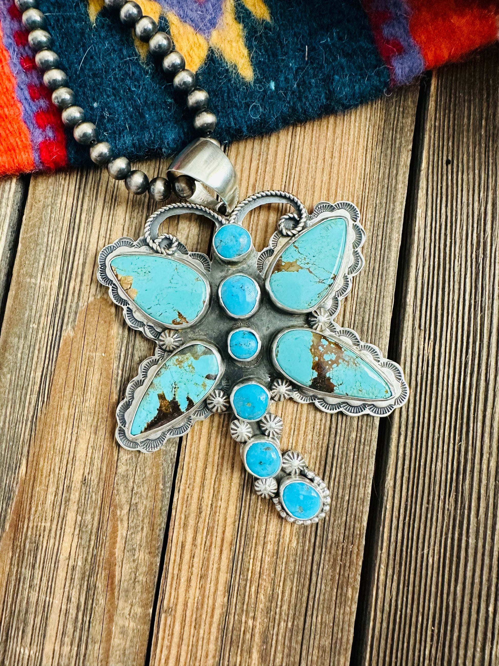 Navajo Turquoise & Sterling Silver Dragonfly Pendant By Shawn Cayatineto