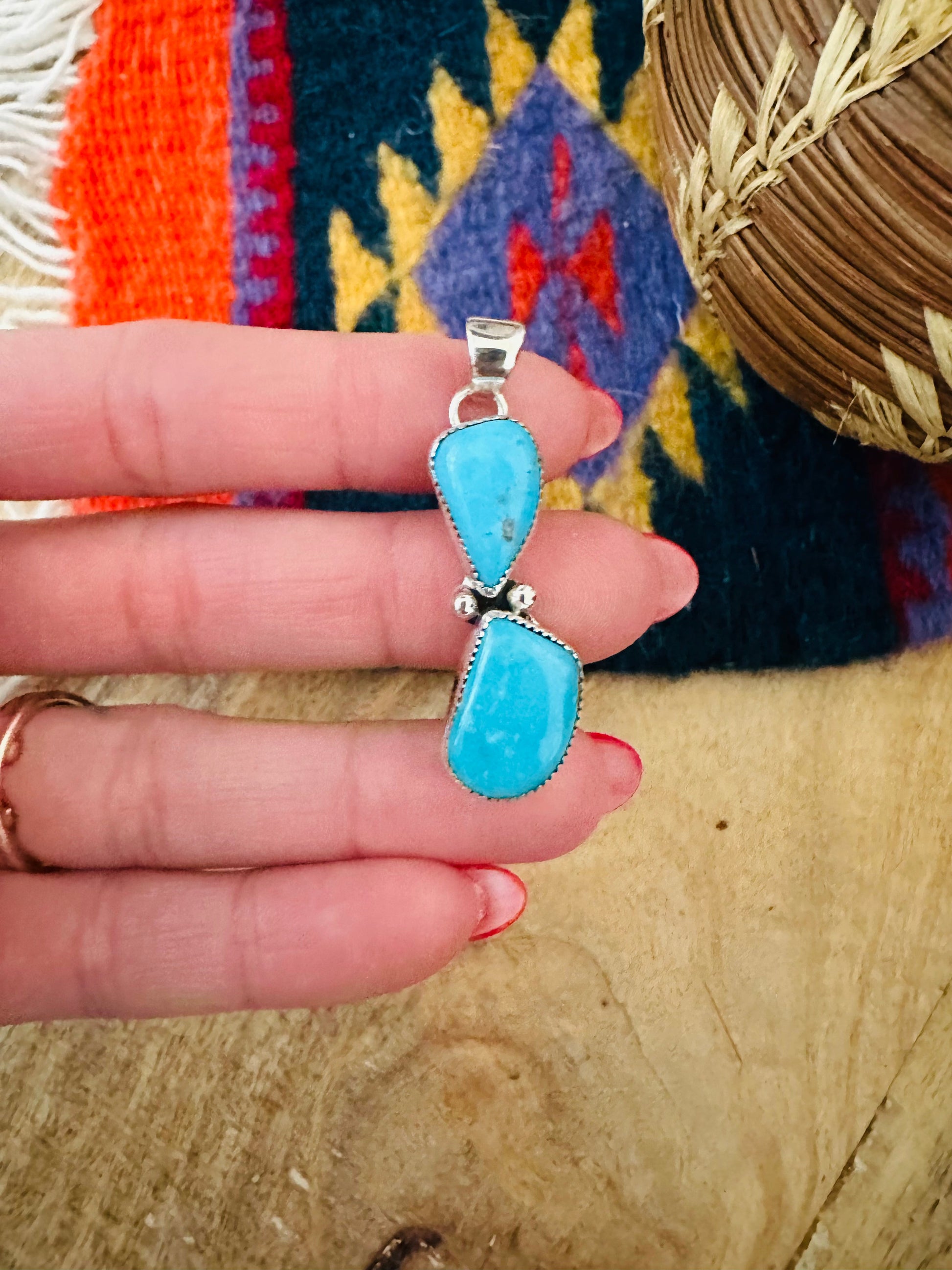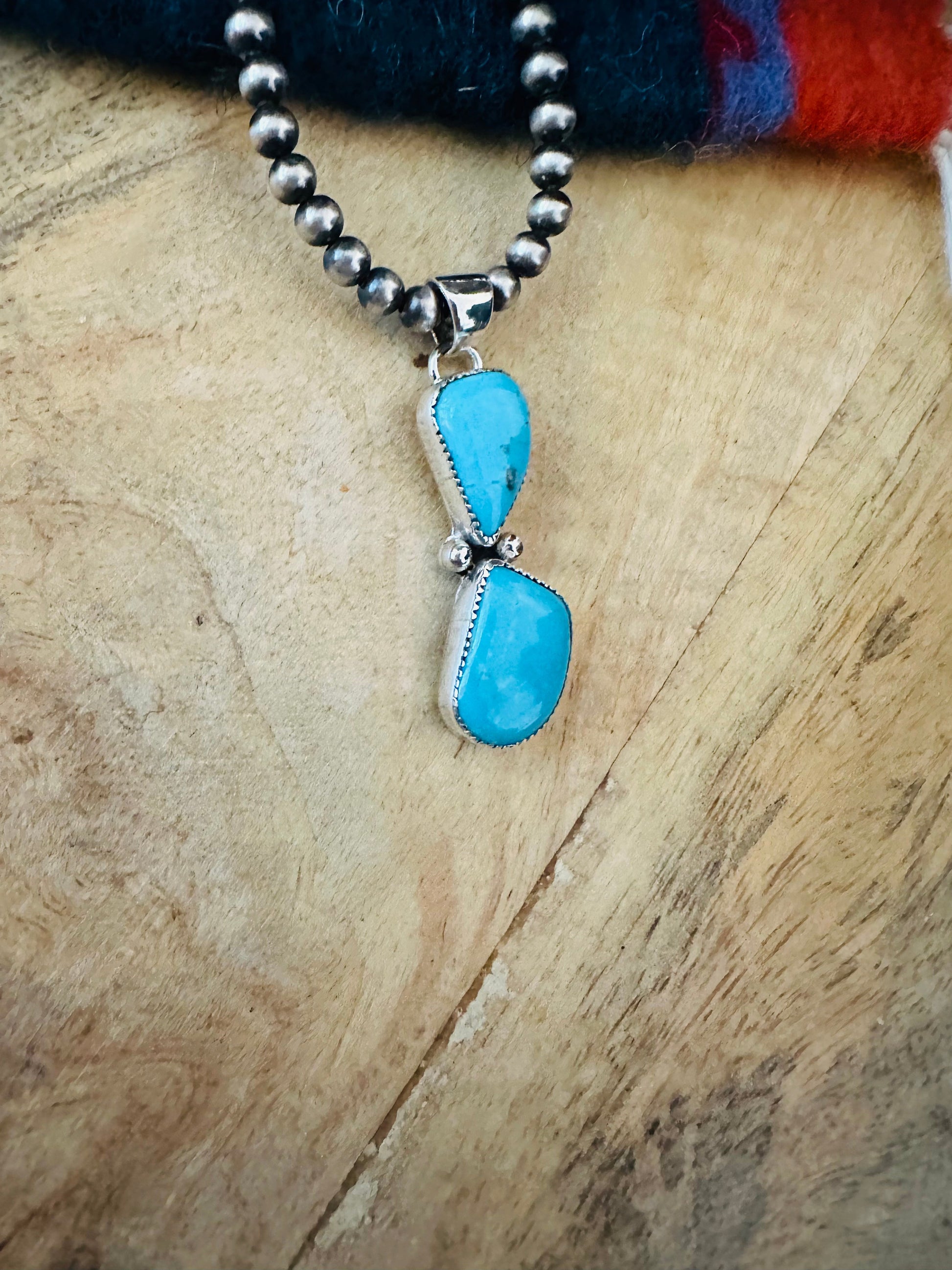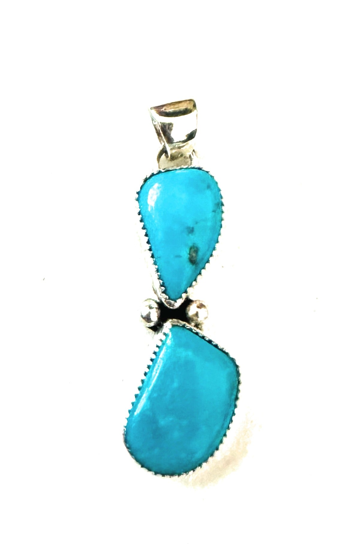 Navajo Turquoise & Sterling Silver Two Stone Pendant
