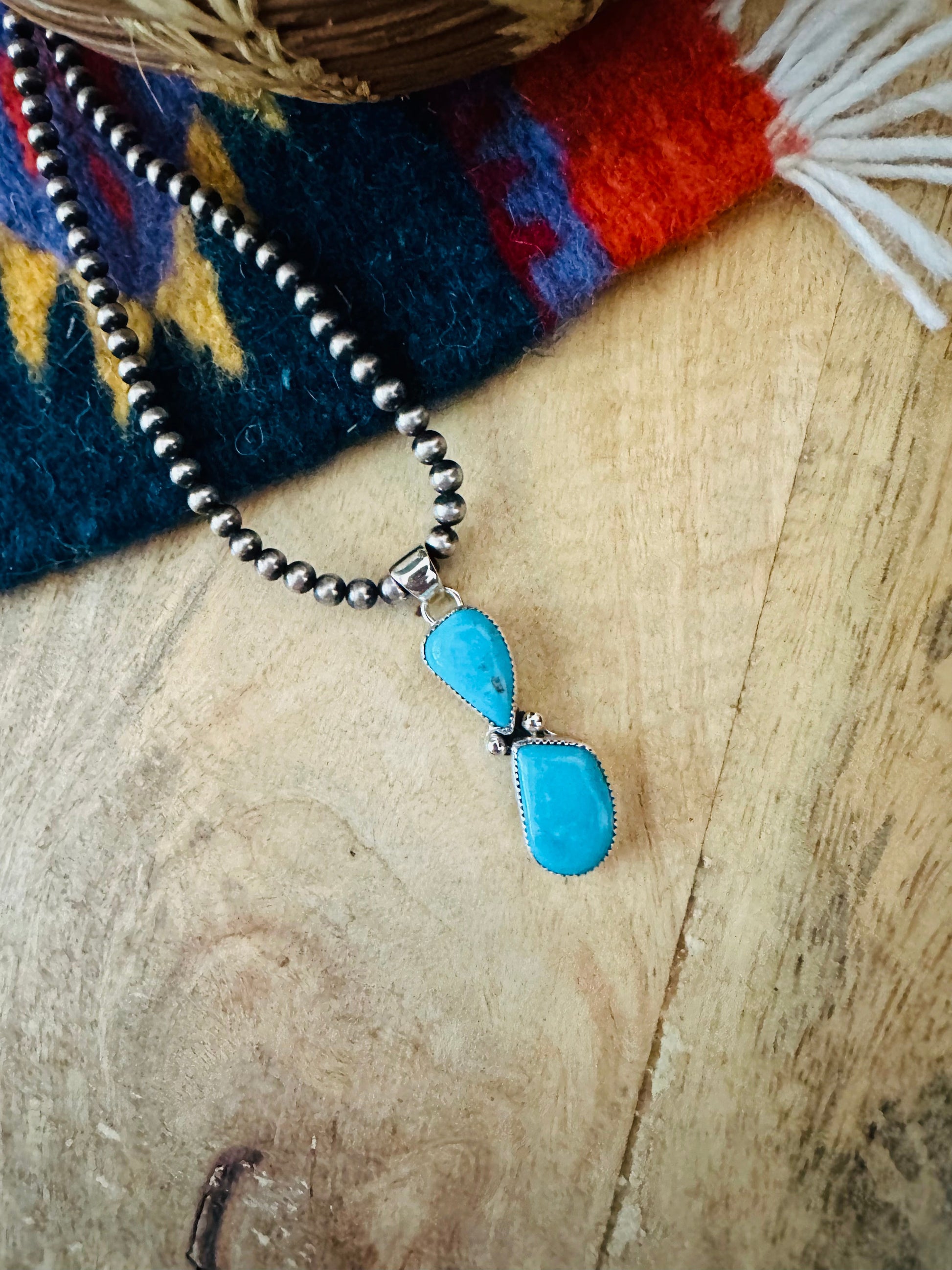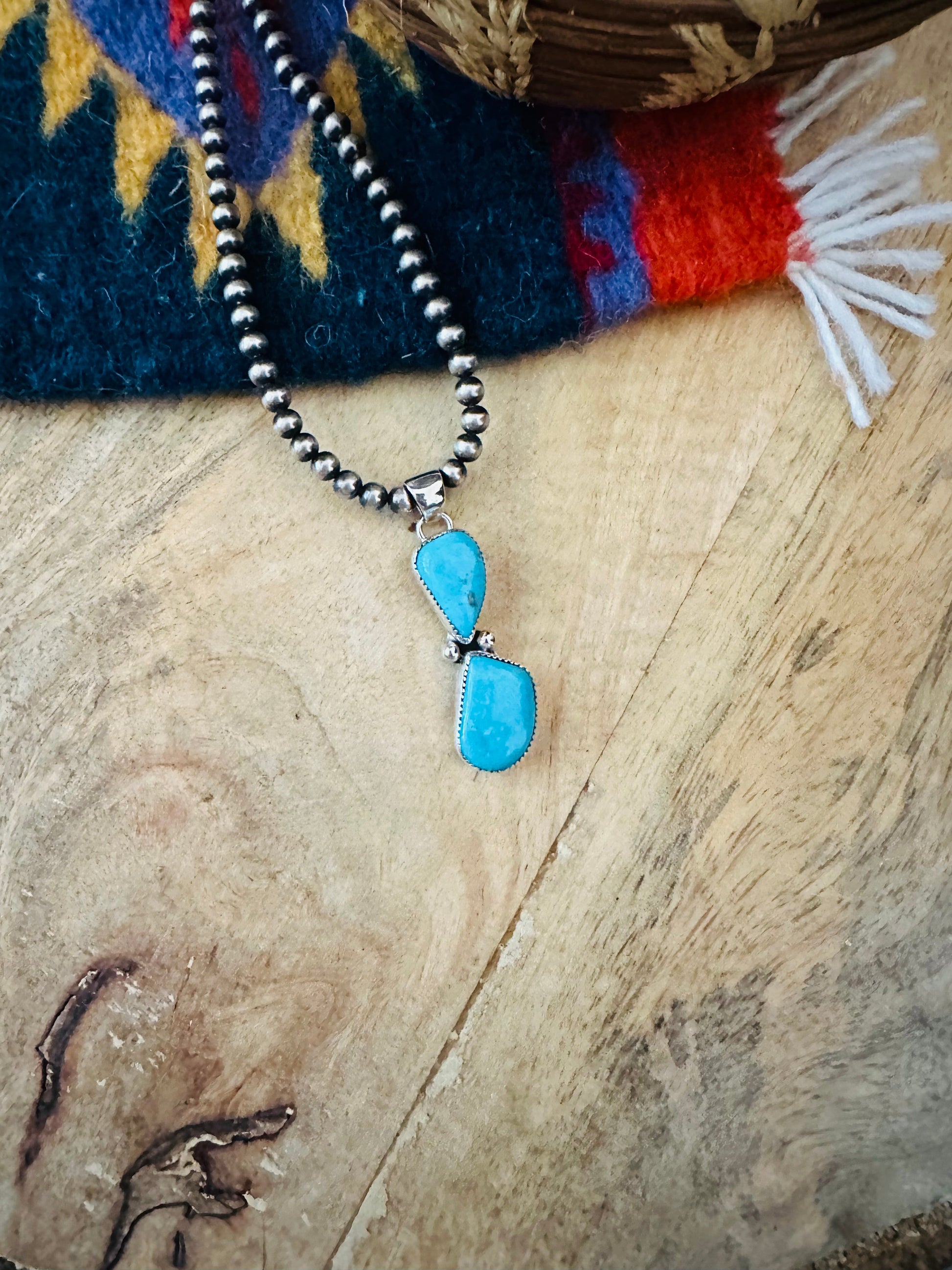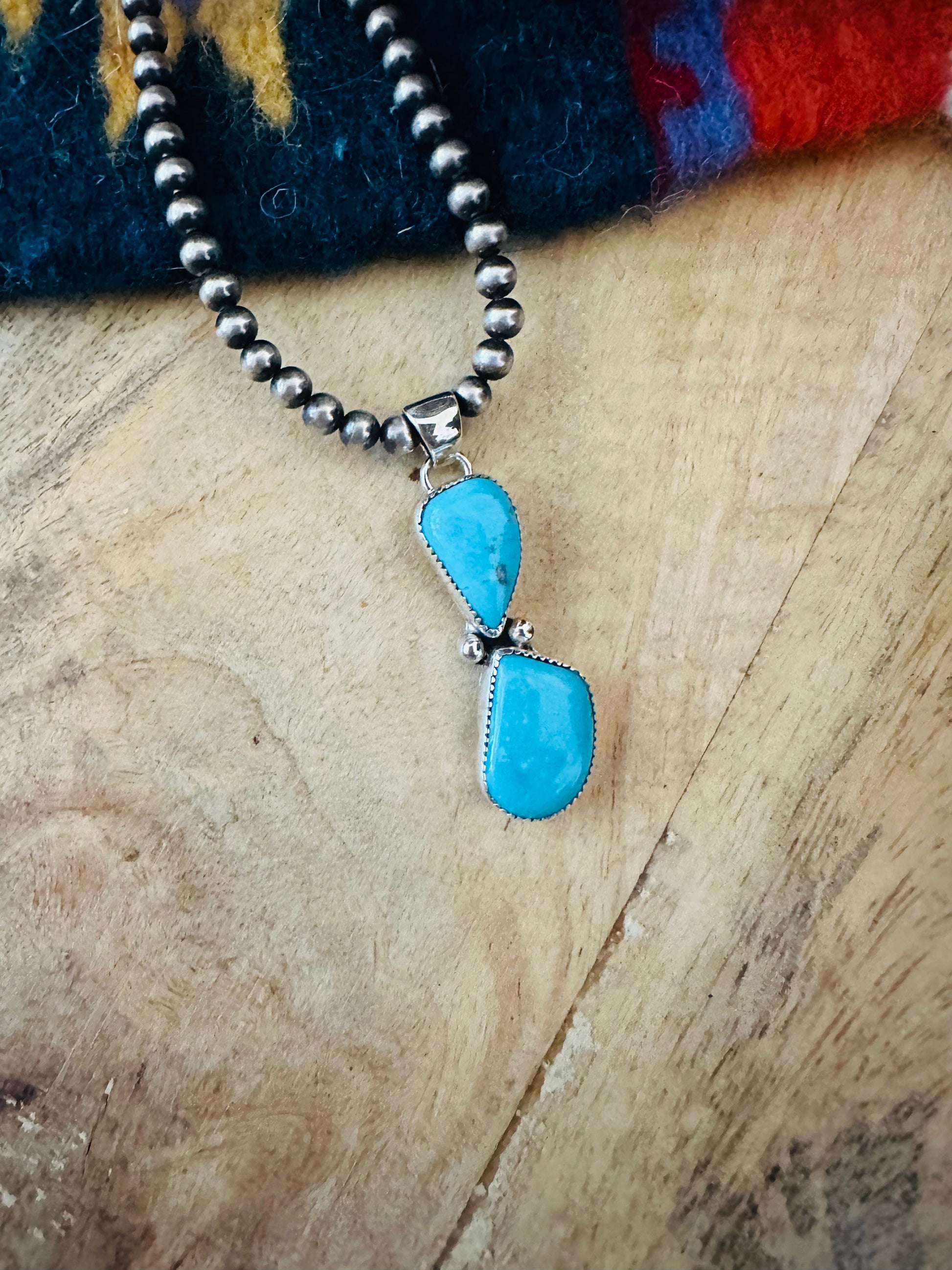 Navajo Turquoise & Sterling Silver Two Stone Pendant