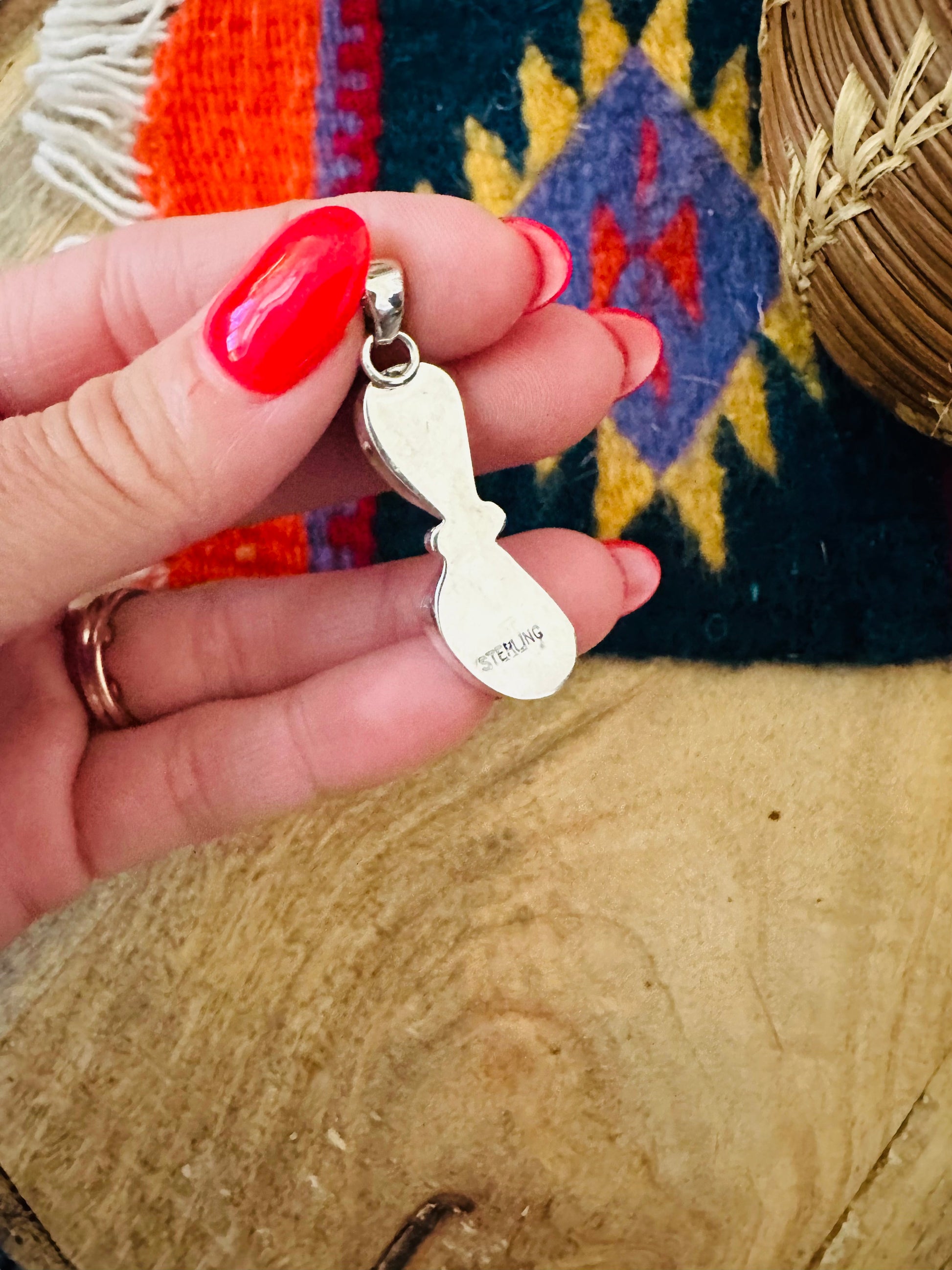 Navajo Handmade Sterling Silver and Turquoise Two Stone Pendant. Such beautiful stones in this pendant! Pendant measures 1 5/8 inches long and 1/2 of an inch wide. Bale measures just under 1/4 of an inch across. Stamped Sterling.