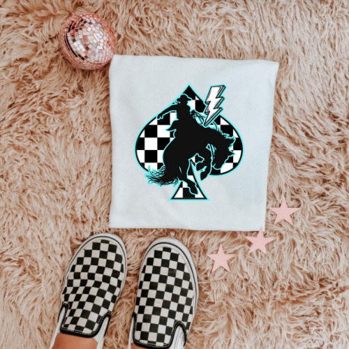 Trendy, comfortable, and one-of-a-kind—this isn’t just another graphic tee; it’s a Checkered Spur exclusive.