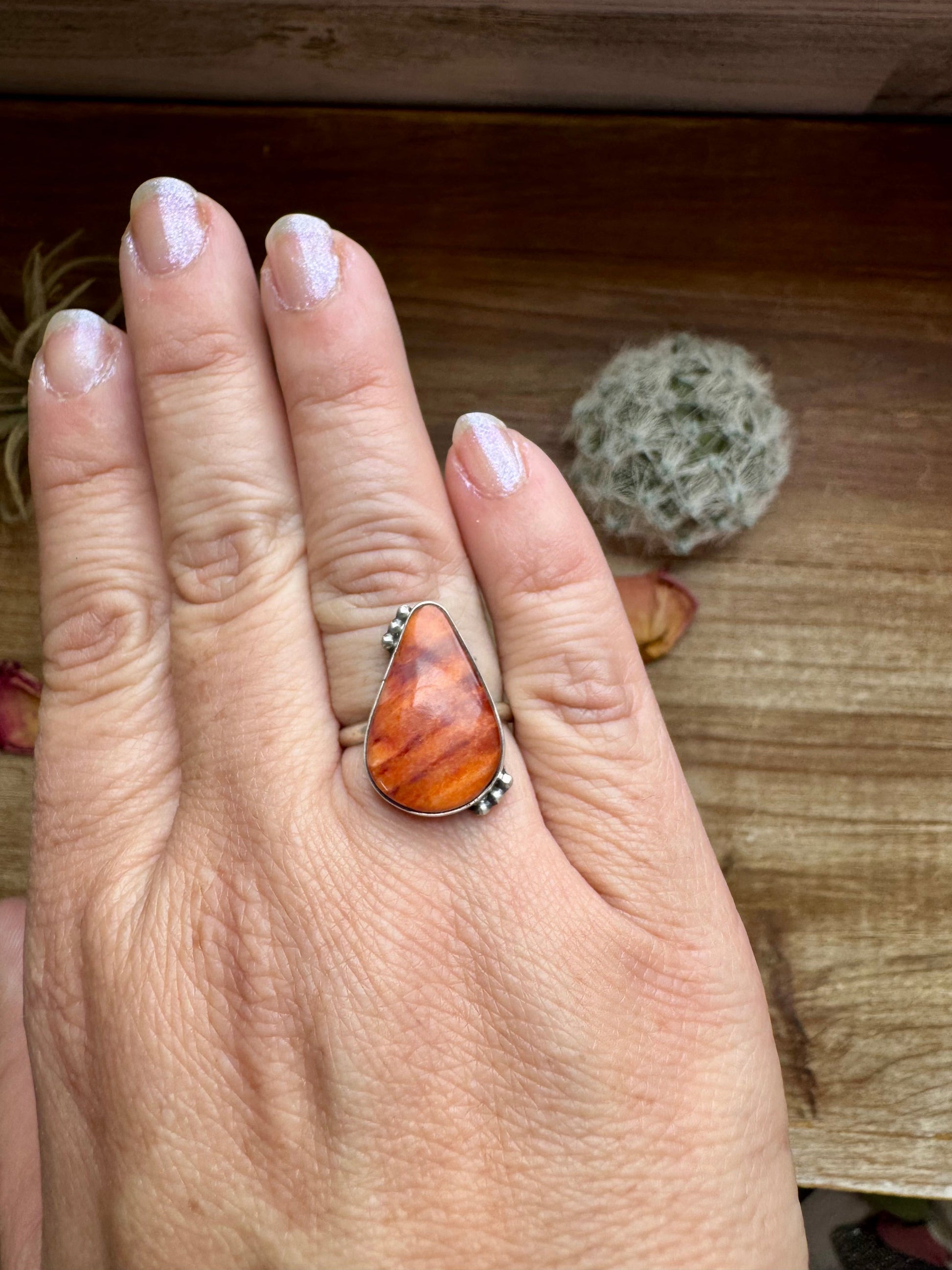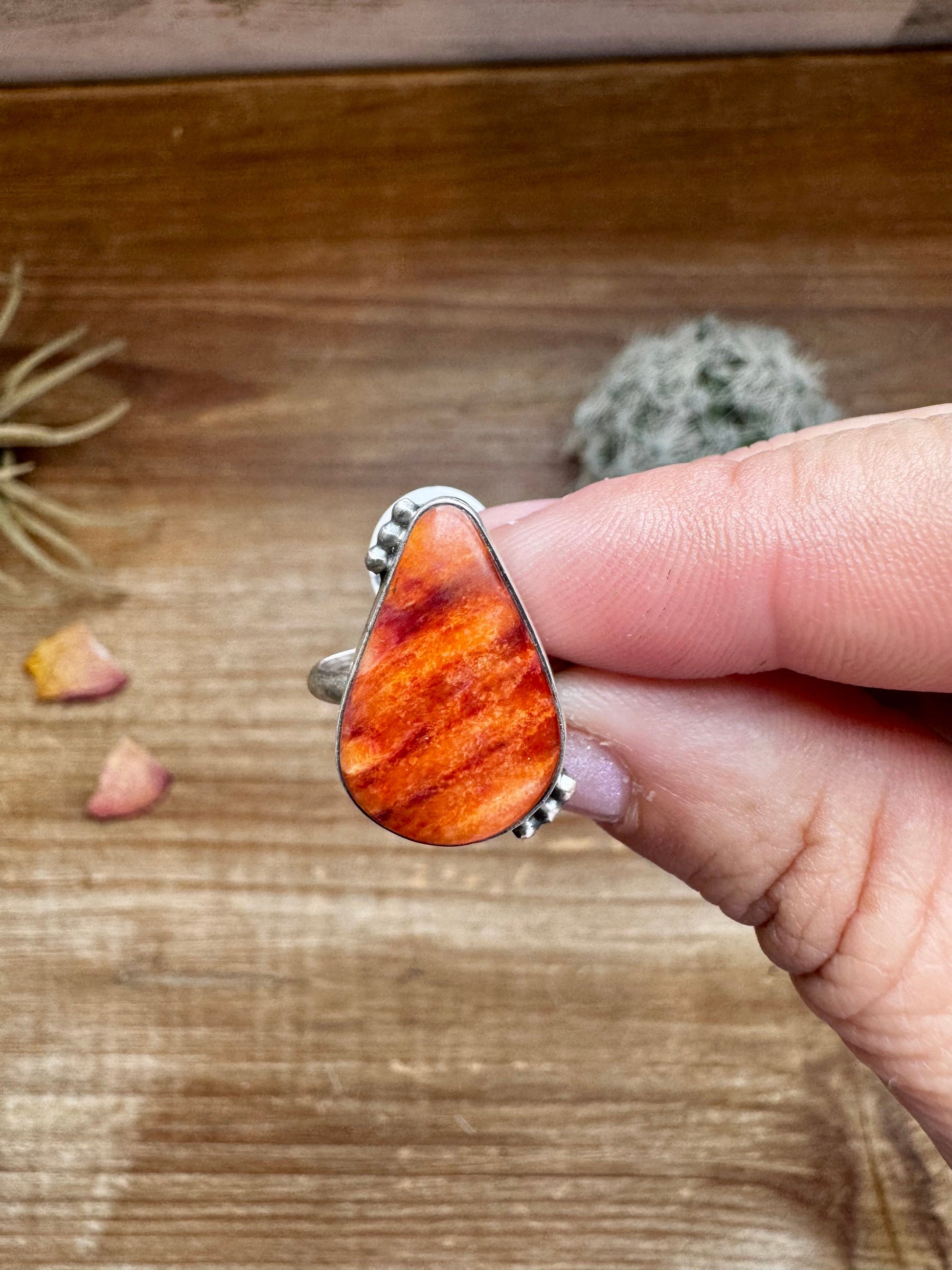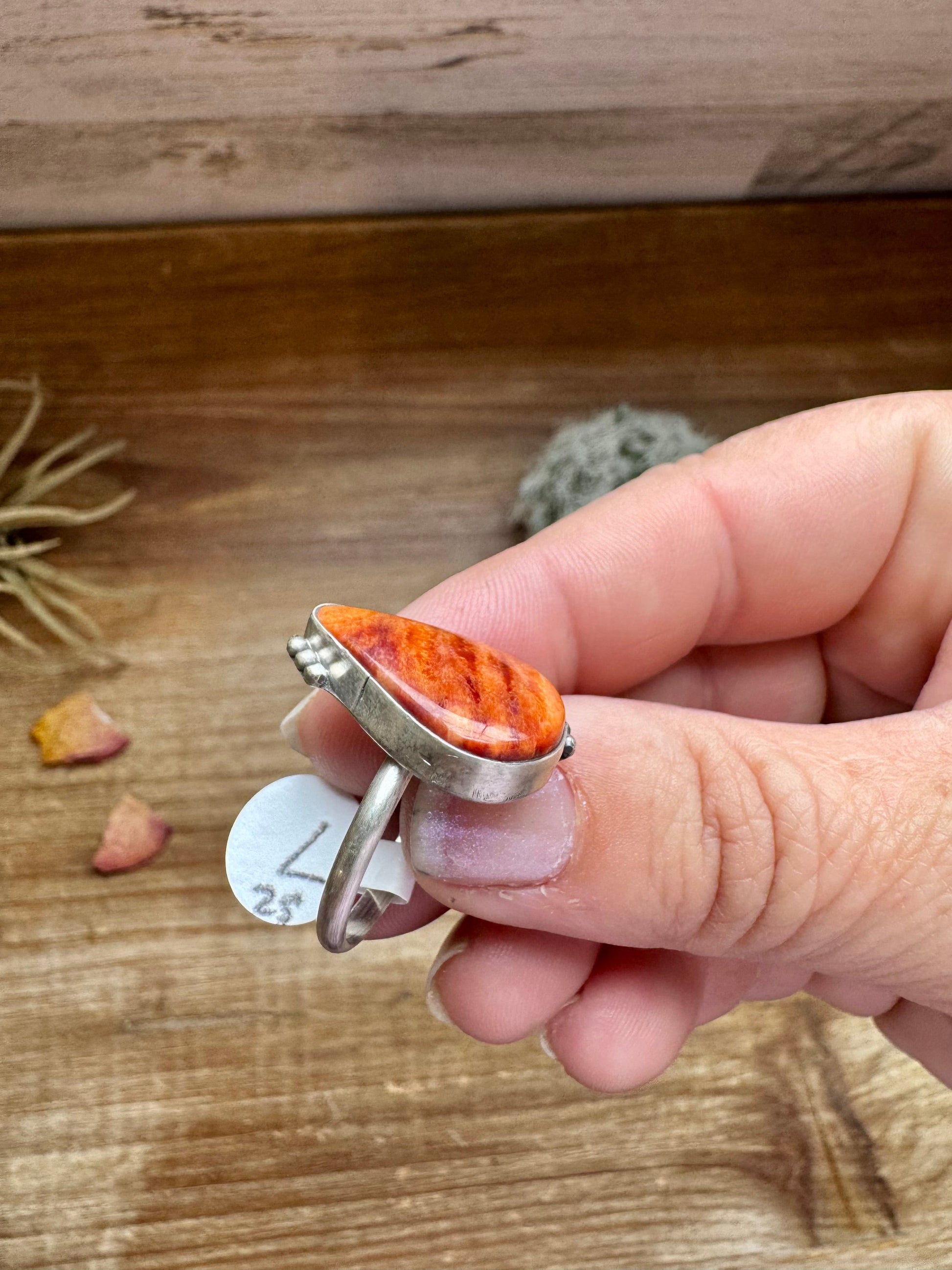 Ring - Size 7 -Red Spiny & Sterling Silver