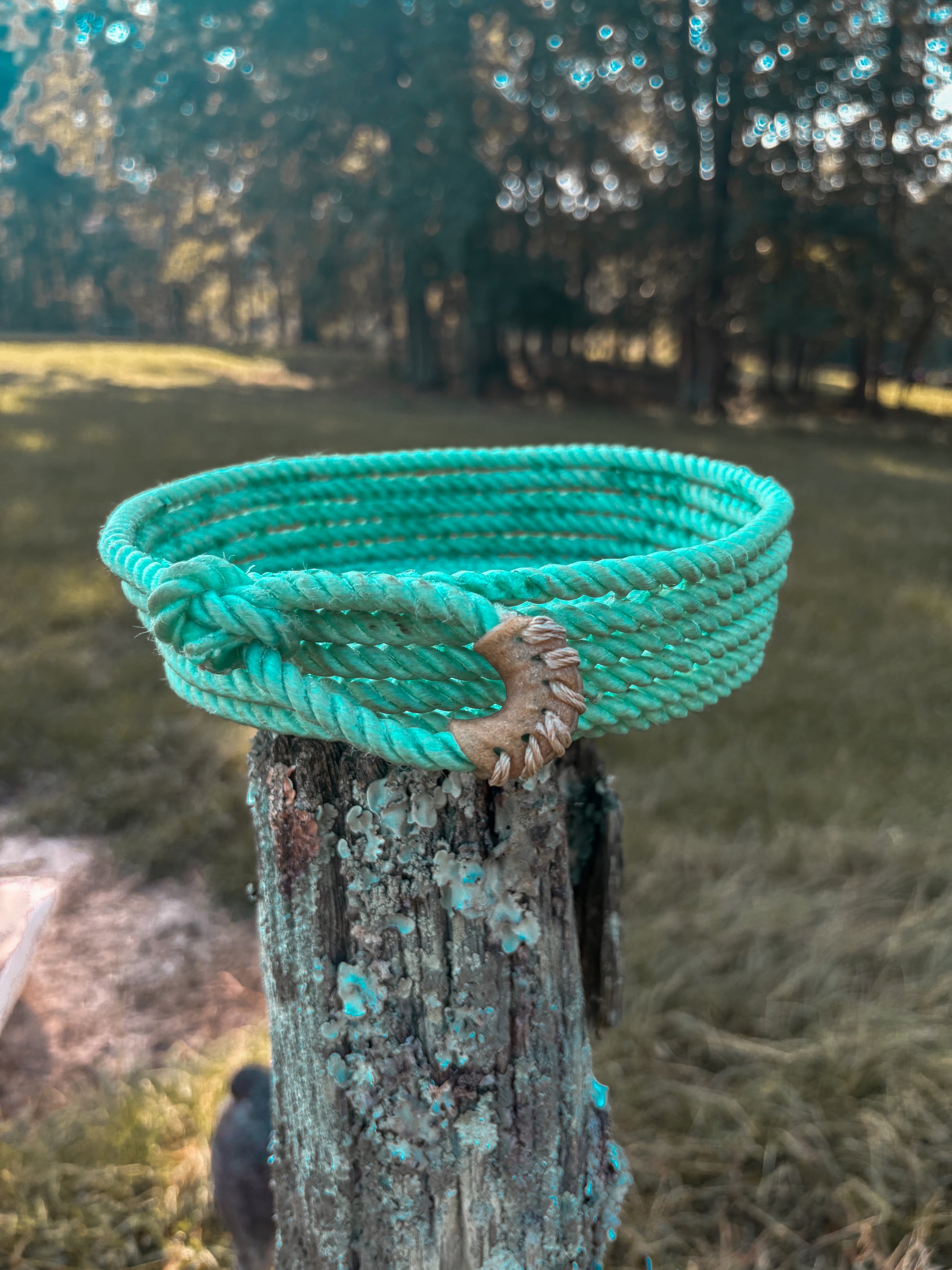 Introducing our handmade rope baskets, available in white, teal, red, purple, and orange. Each basket is made to order by our expert craftsman with a 7-14 business day turnaround time. Versatile and stylish, these baskets can be used for home decor or as a practical storage solution for jewelry. Custom orders are also welcome. Add a touch of uniqueness to your space with our new favorite home decor pieces.
