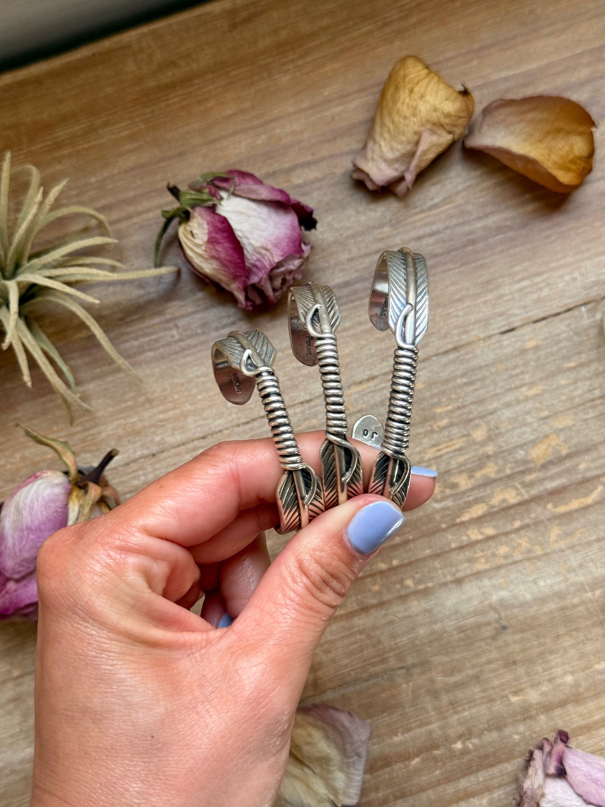 Featuring Jason’s iconic feather design, the cuff showcases deep hand-carved texture, clean silverwork, and exceptional Southwestern artistry.
