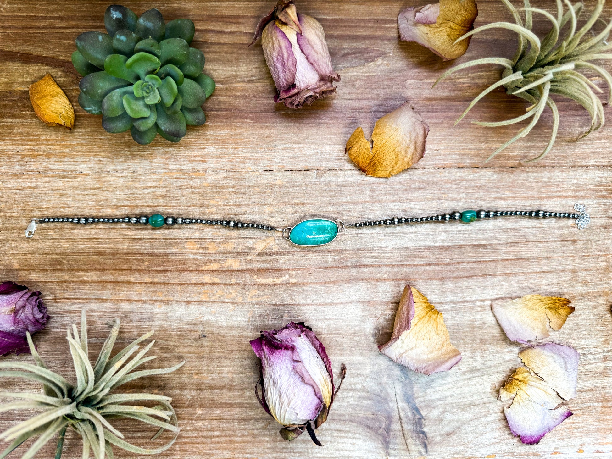 Each design is one of a kind, created one at a time with natural stones that vary in color, matrix, and shape — no two necklaces will ever be the same.