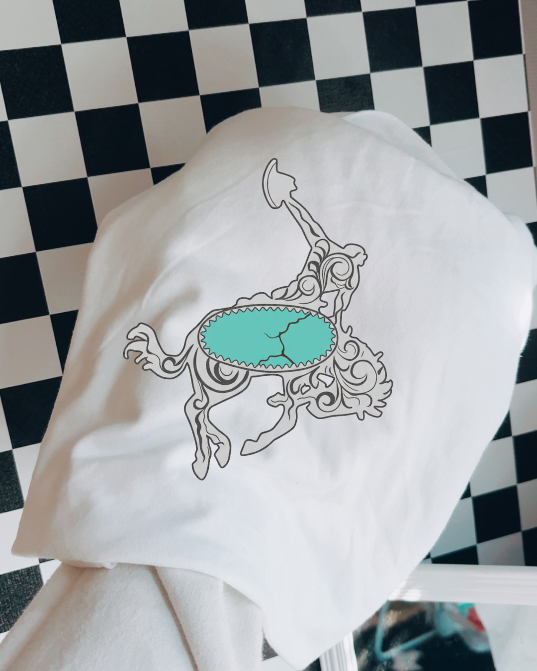Trendy, comfortable, and one-of-a-kind—this isn’t just another graphic tee; it’s a Checkered Spur exclusive.