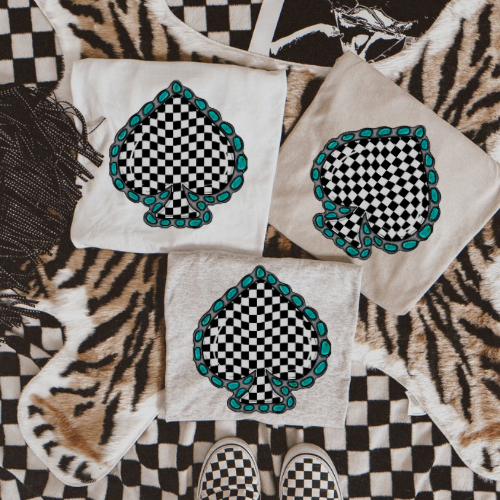 Trendy, comfortable, and one-of-a-kind—this isn’t just another graphic tee; it’s a Checkered Spur exclusive.