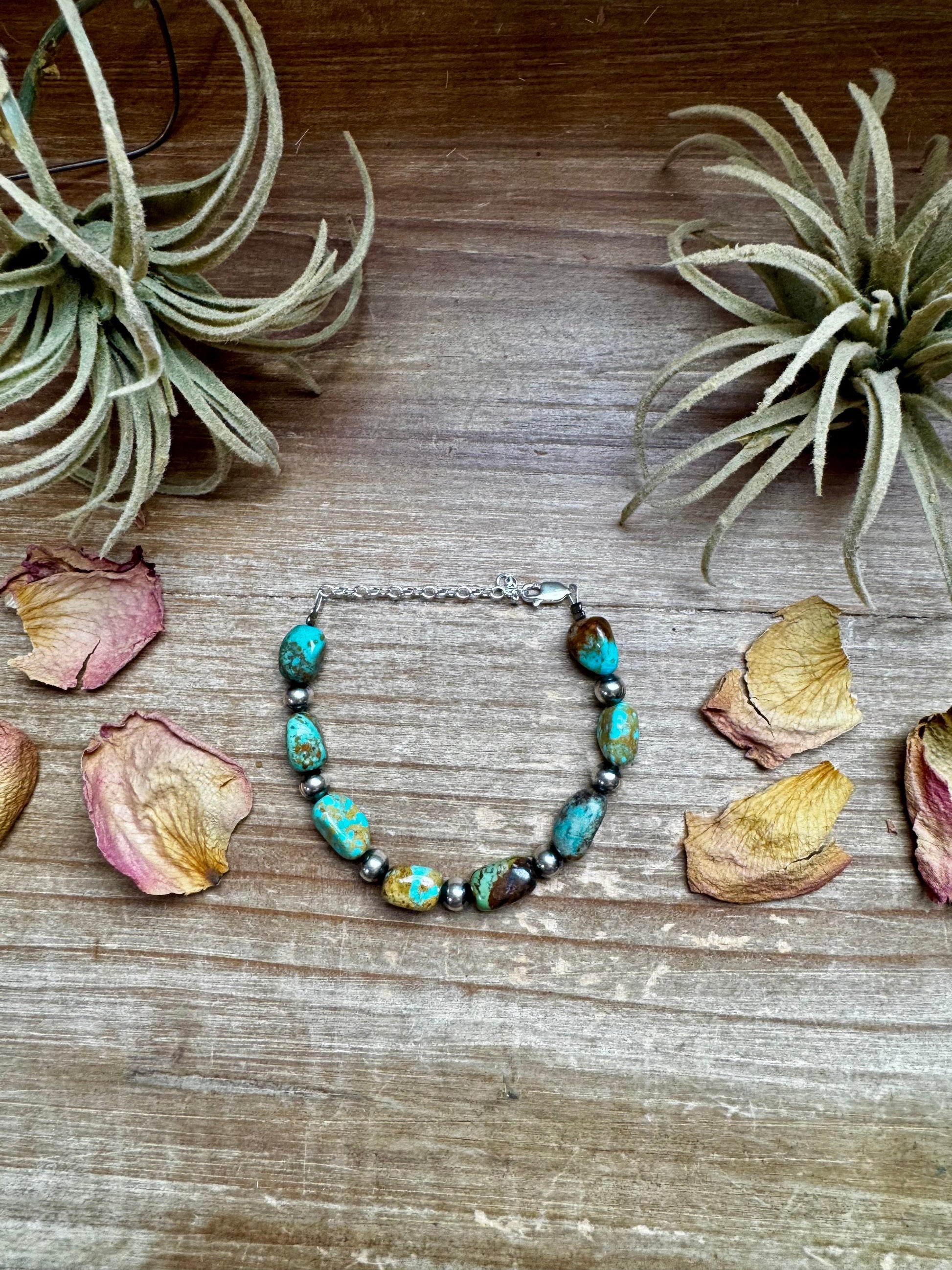 Turquoise Nugget & 6mm Sterling Silver Pearl Bracelet
