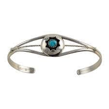Turquoise round shadow box Navajo bracelet cuff sterling silver